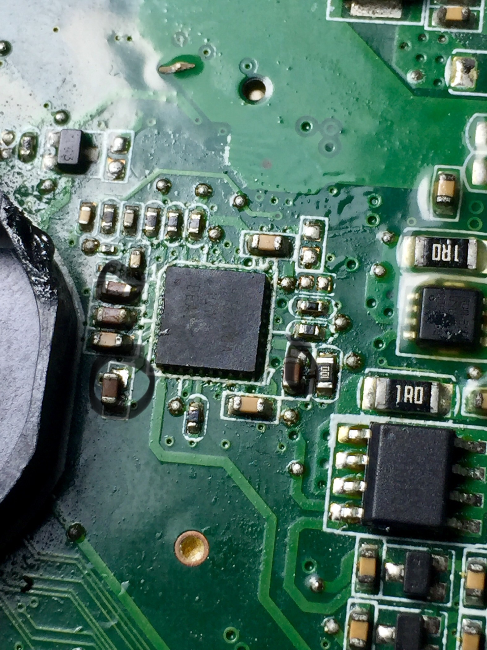I have attached the photo of caps around the ic the two caps on the left measured 0.00kohms and on the right cap shows OL .