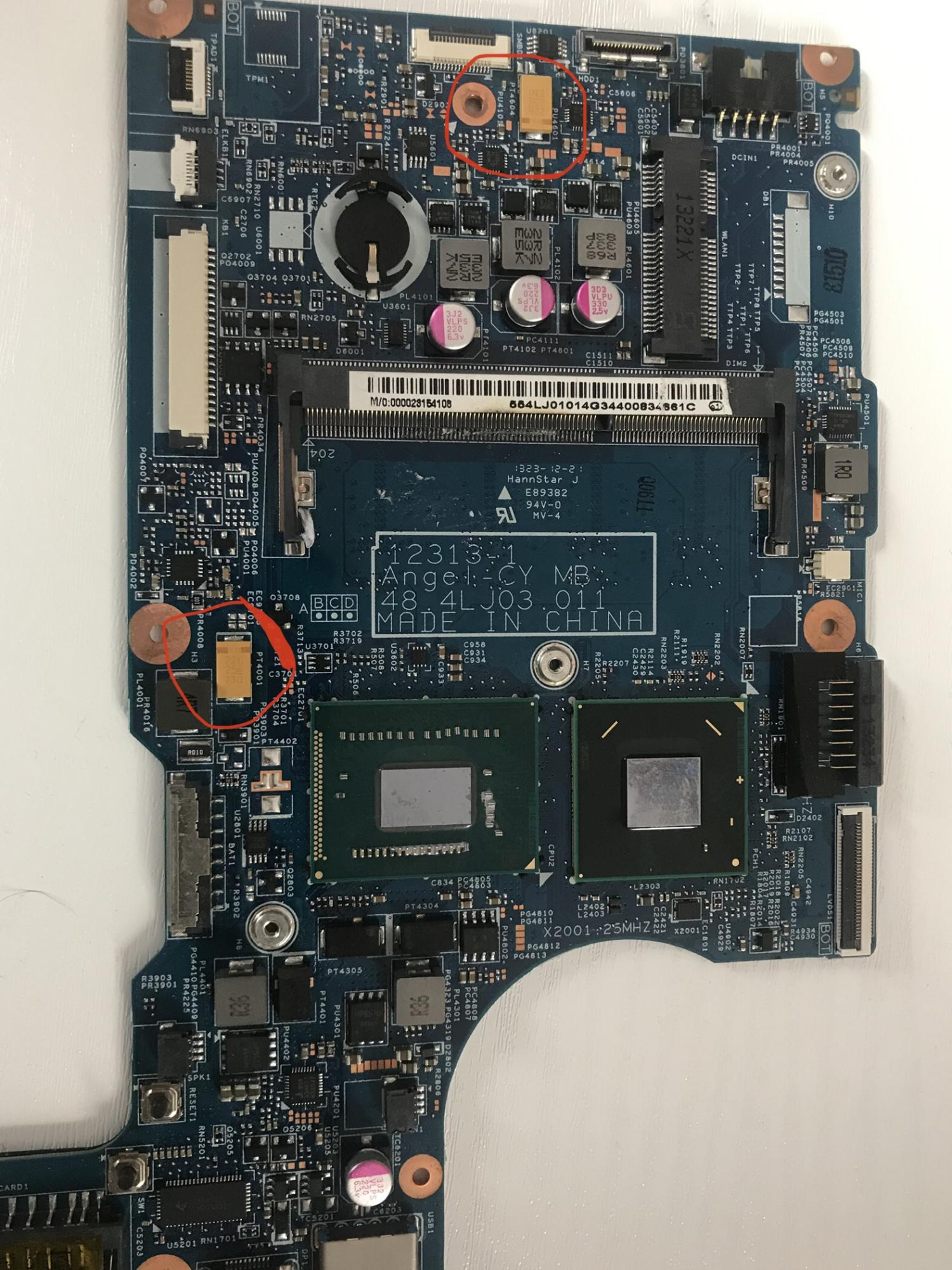 Its seems all PIN soldered. Motherboard with soldered ram with power and power button only restarting blue led blink.