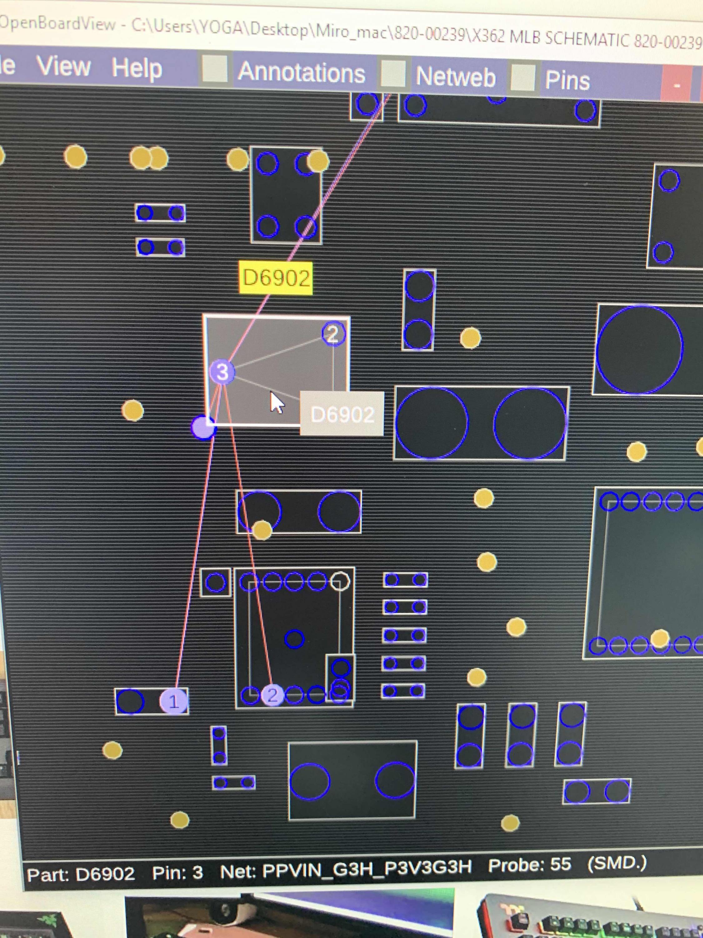 Hi, my own laptop died. One morning it doesn't start up. No charging, nothing. I've opened it, found the boardview and schematic, here in the forum. So I was able to trace some power lines.