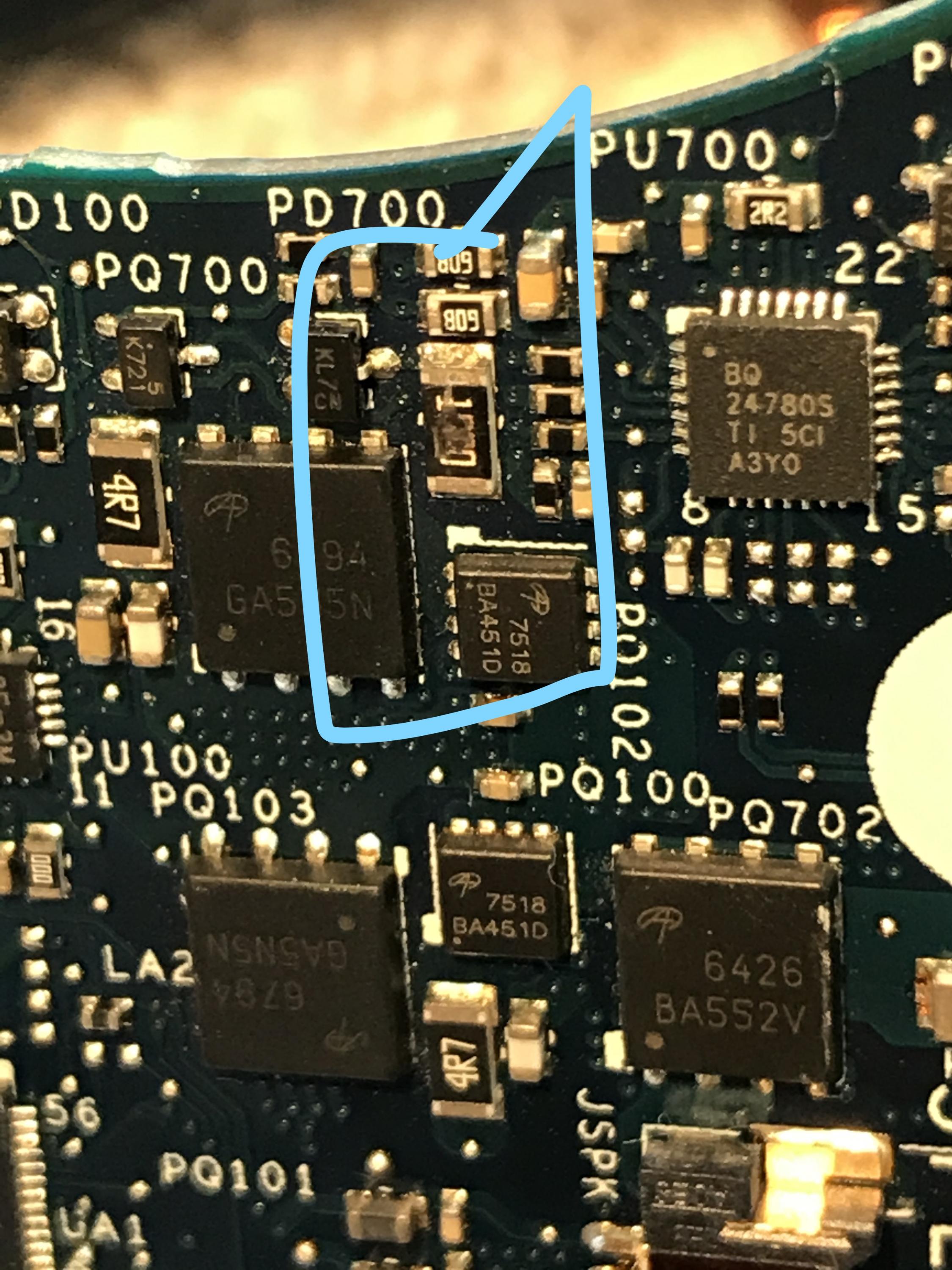The laptop does not power at all, nothing. There is 19V at 1 side of the resistor, 0.89 at the other.