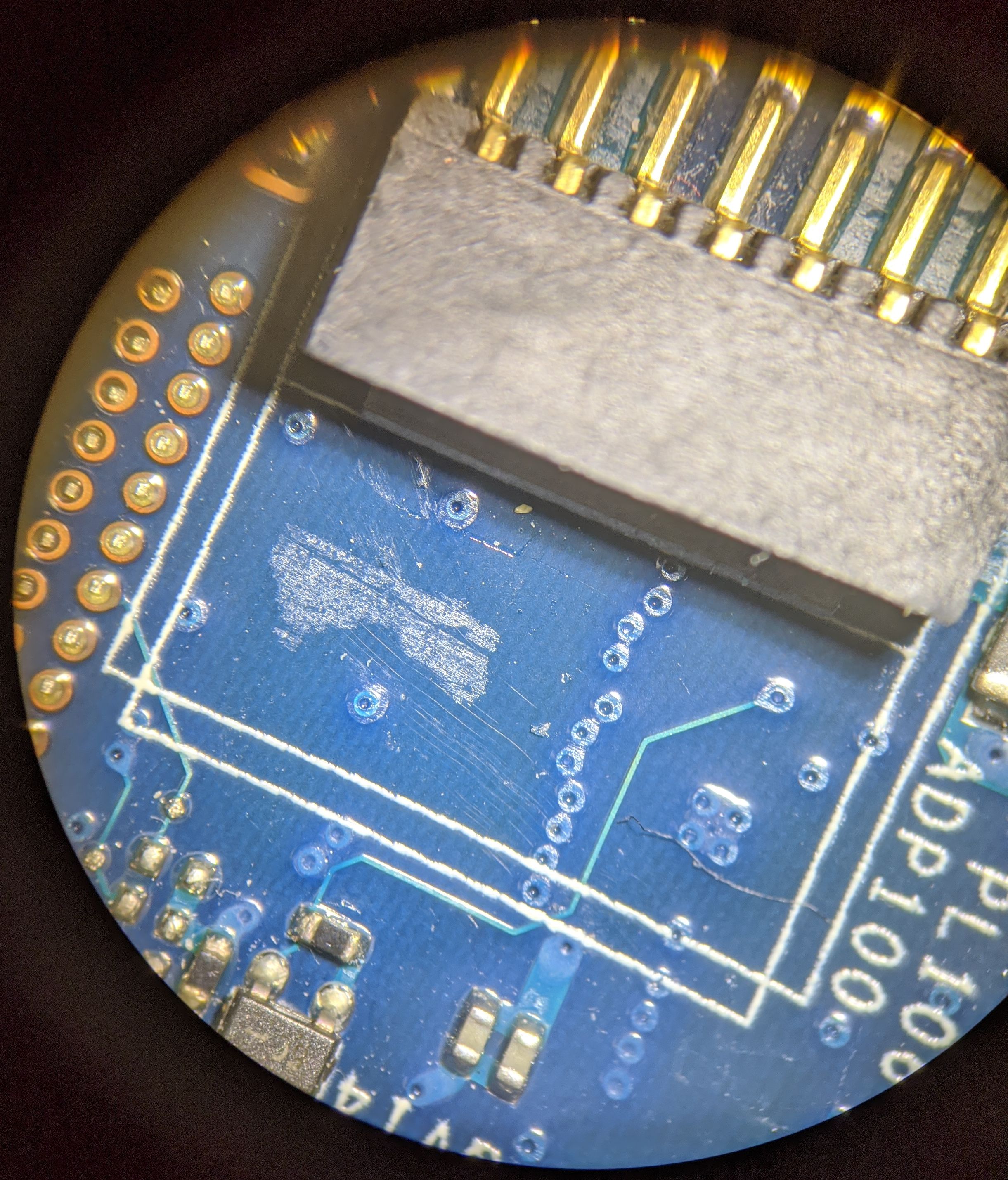 Here are some closeups of the area around where the jack connects, top side and bottom.