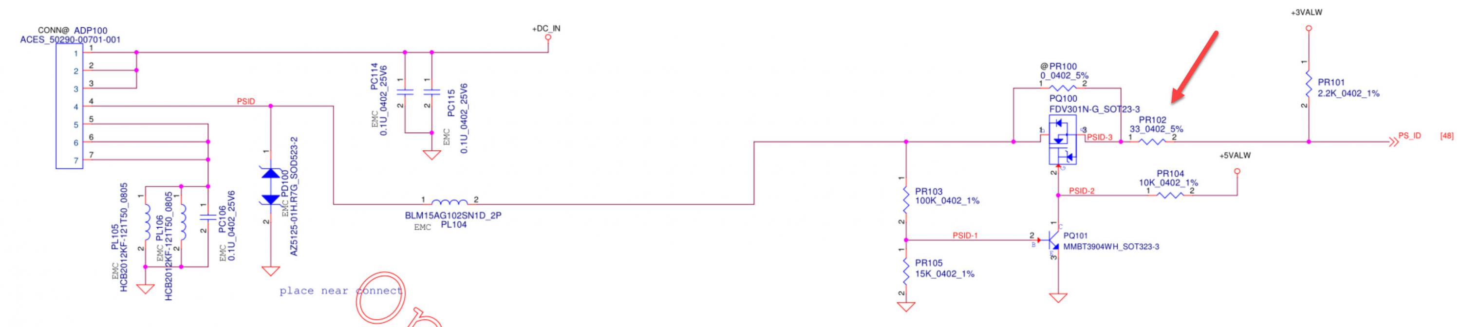 Hi there, I am hunting down an exact issue, however locating PR102 seems to be a huge challenge. It seems to be nowhere close to PQ100 and does not have its own silk label on the board. I can see a trace going from PQ100 down into a via, which should lead to PR102, but that via continues in the inner layers of the PCB and good luck tracing that..