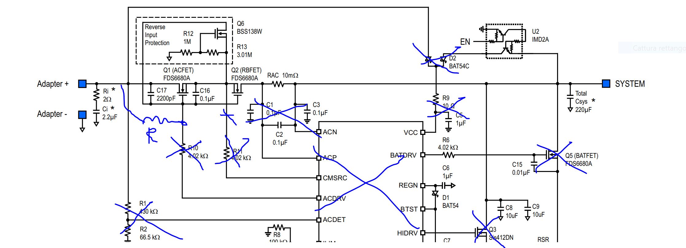 You can use the bq24735 datasheet , for some resistive divider the value of resistors can change but hte result is the same you can check this readinta a schematic