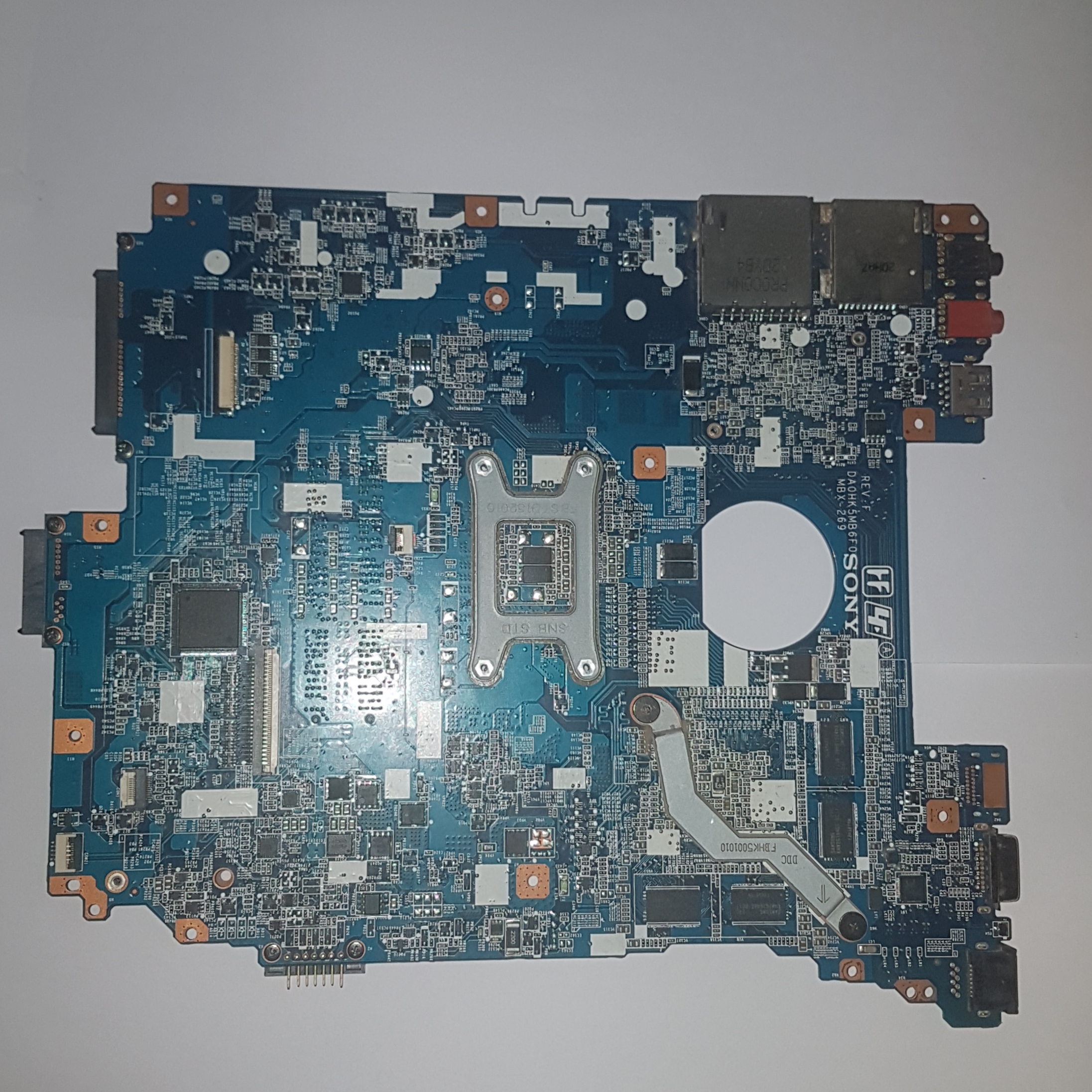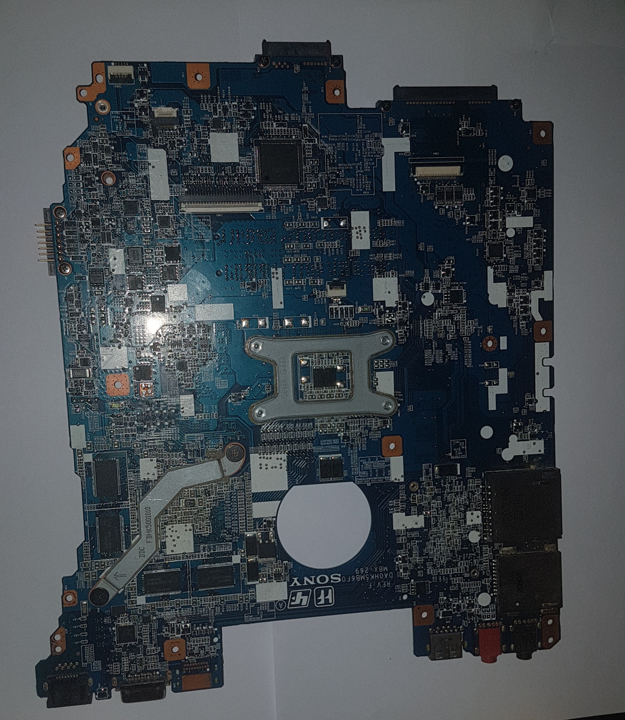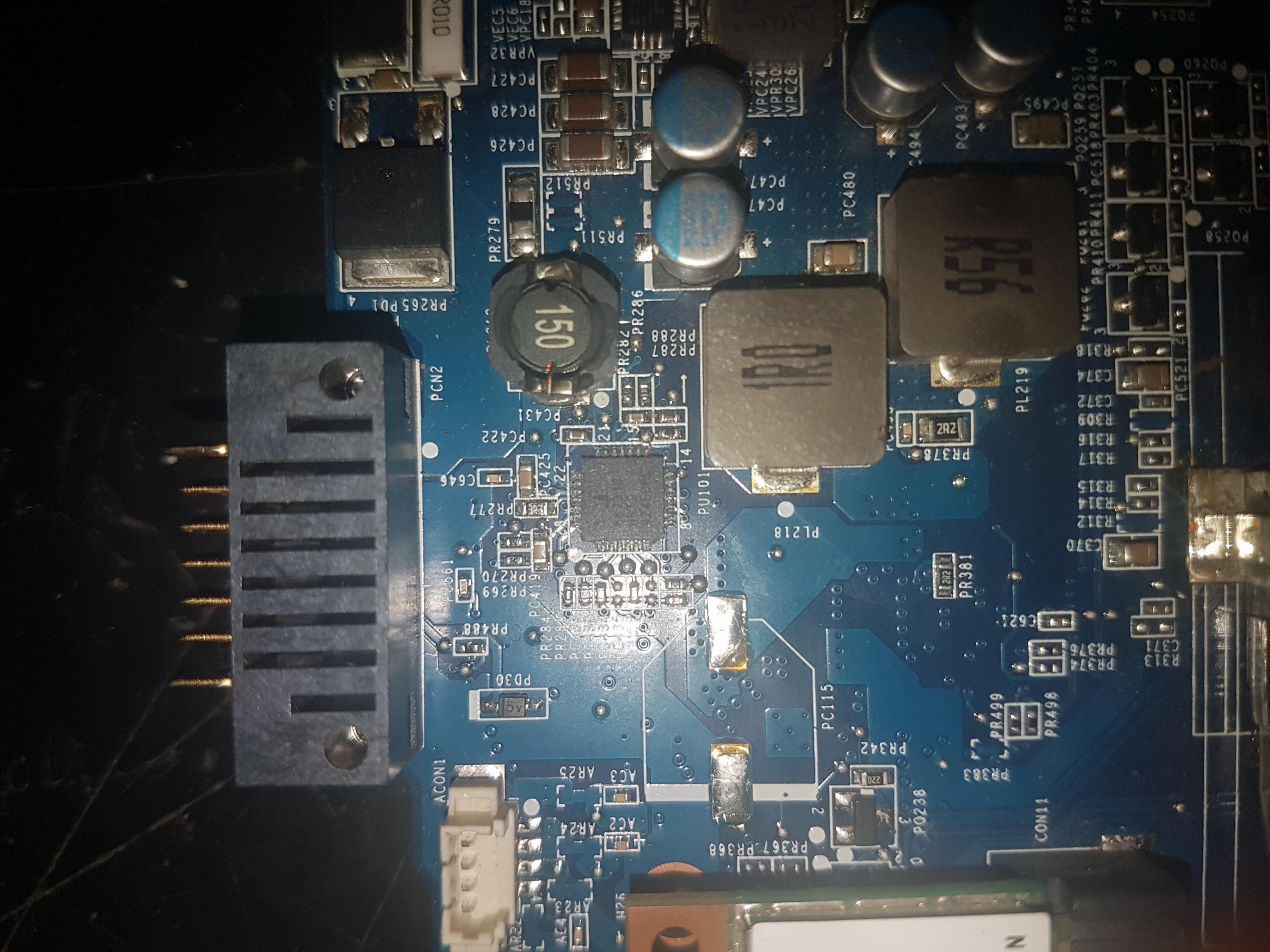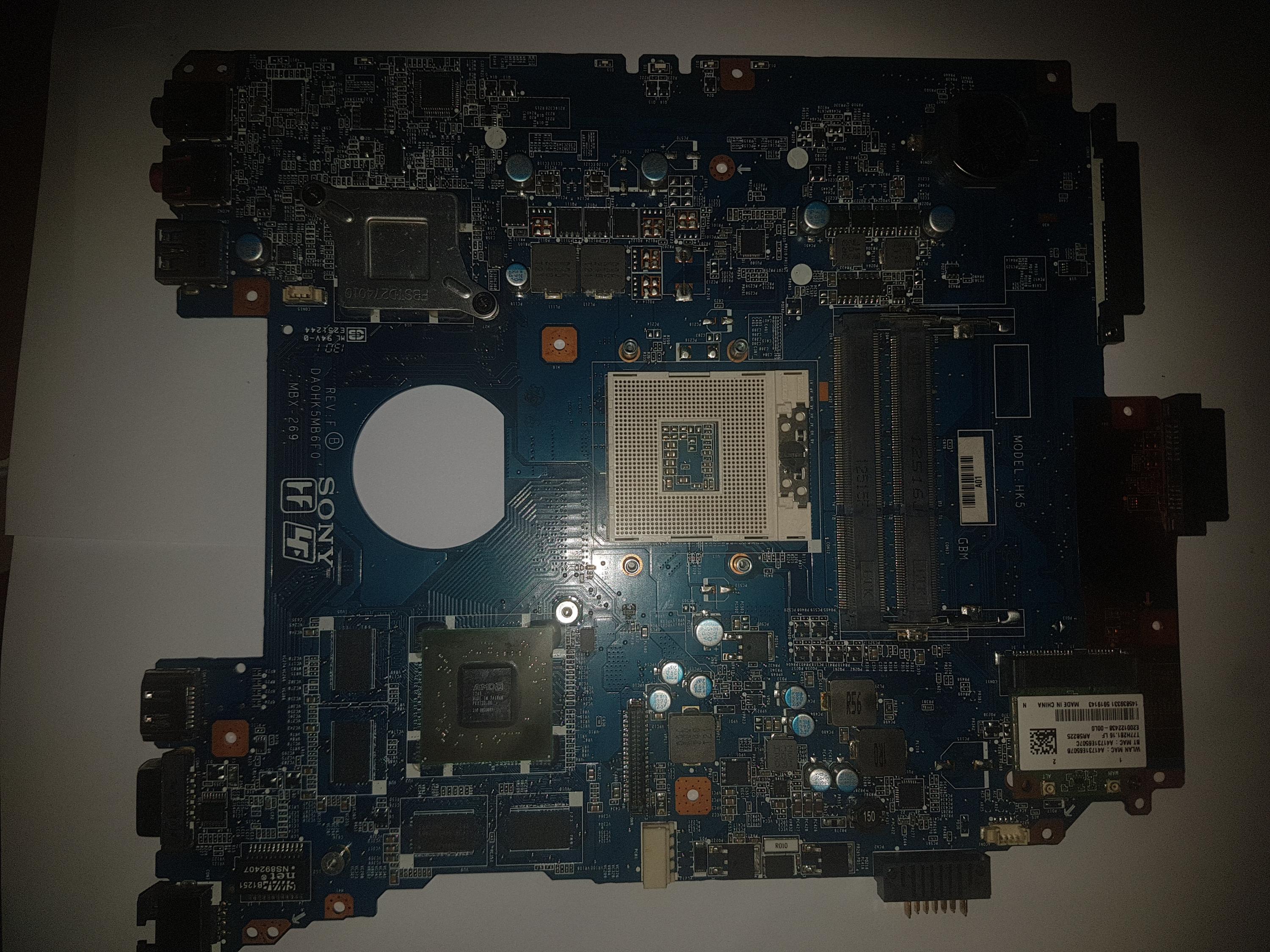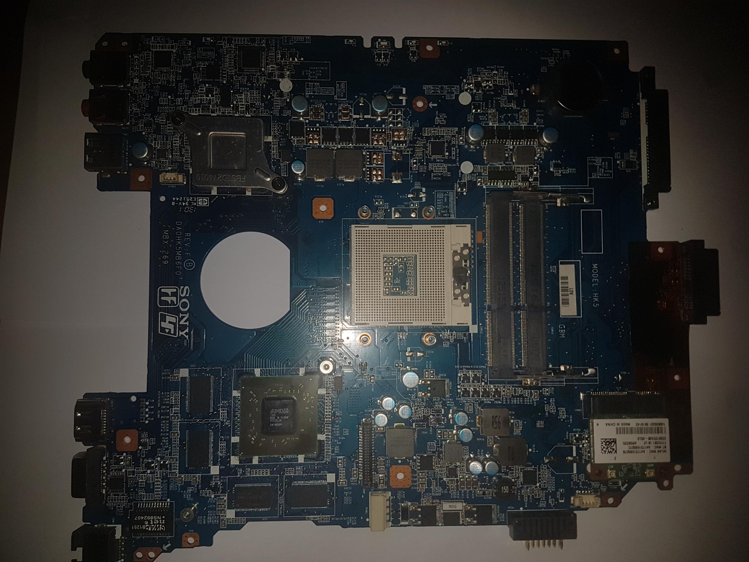 I have a Sony MBX-269 DA0HK5MB6F0 motherboard that just stopped working randomly.First the 5v power rail was out, a capacitor {I think} started making a buzzing noise, then 3v and now 19v aren't present. When I connect it to its charger, the charging IC (PU101) starts heating up.