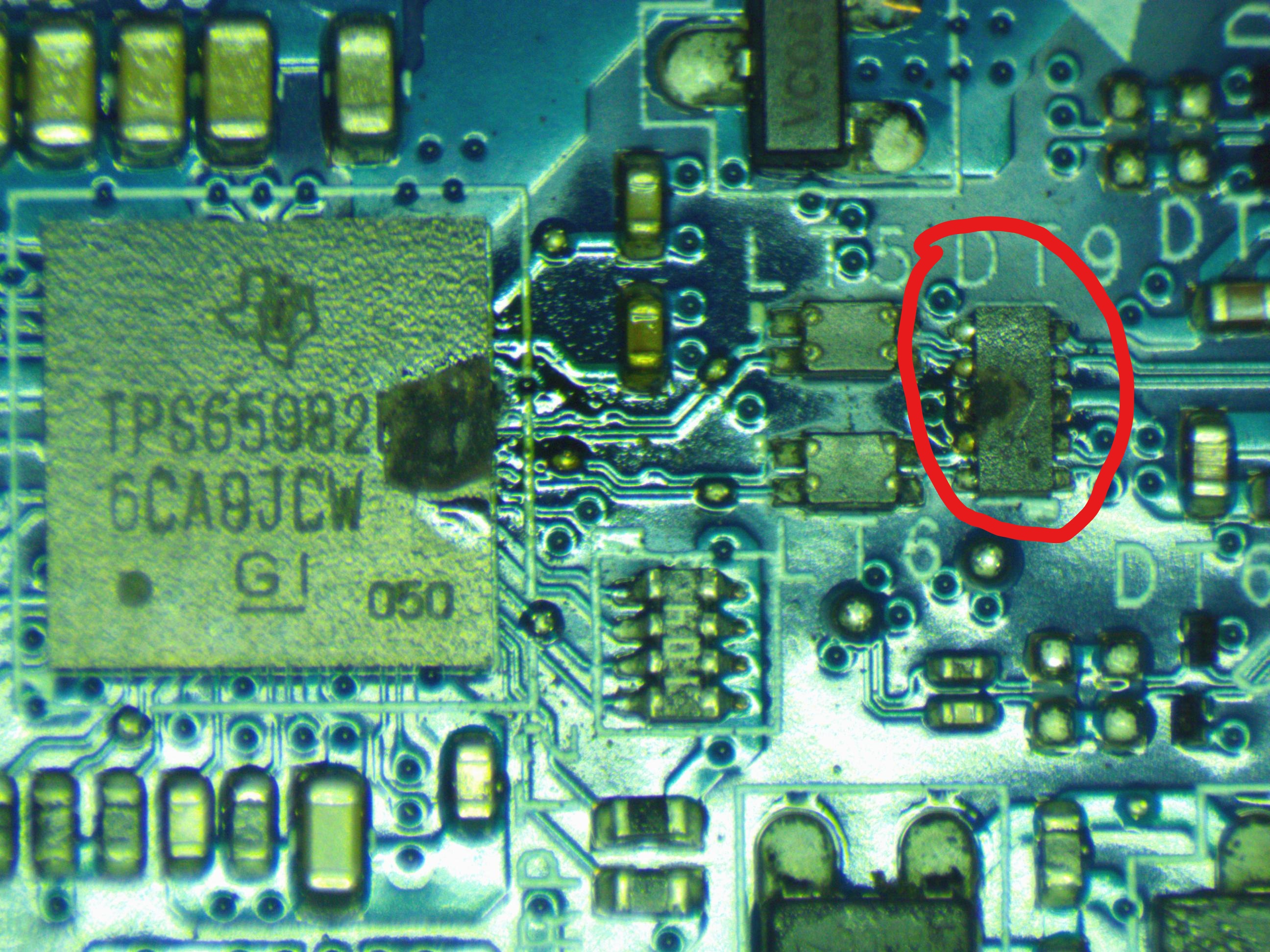 Hello guys, I got this Lenovo yoga 720-13iKB board ID LA-E551P Rev 2.0 which is not charging, and after inspected found 2 blown chips. Could anyone here help me identifying those 2 IC one of them has only the last 2 letters missing, Please see the pic and help me with this. the one that it is circled red is the one that has nothing and the texas instruments one is the one that has only the last 2 lettersmissing.thanks.