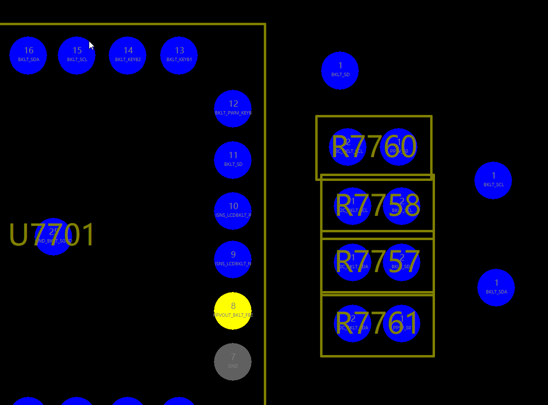 Backlight IC BKLT_SCL and BKLT_SDA both measure 0.545V diode mode to ground