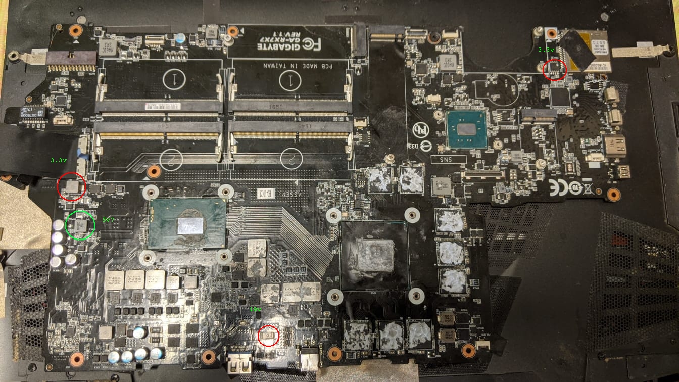 This arrived dead and it looks like someones had a go at this. Working blind as I don't have boardiew/schematics. So far when I press the power button, 19v present, 3.3v on coil and on bios.