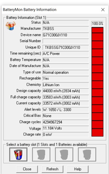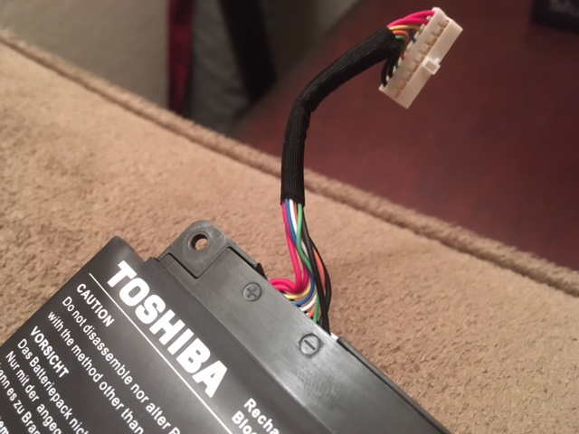 Toshiba P55W-C5314 with a PA5208U-1BRS battery. Worked fine for months until a couple of weeks ago. Laptop will not turn on using battery power. However, powers on fine with AC power. Battery shows 100% charged via battery icon displayed in the bottom right corner and also by running BatteryReport so it seems to be recognized in some way - yet the battery charge status light on the case does not illuminate so maybe it doesn't?