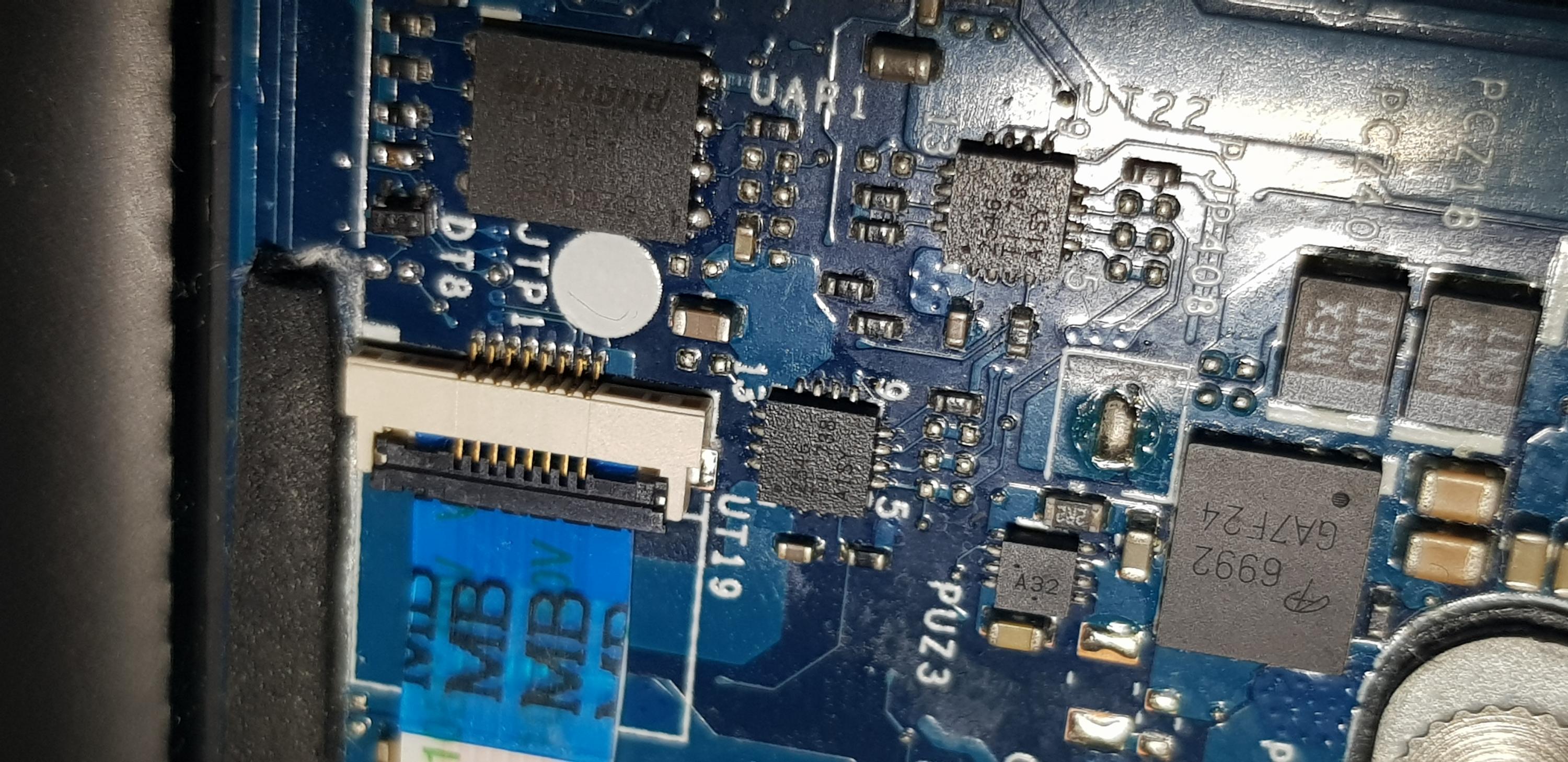 P.S. I have one spectre right now where both ICs don't talk to power supply to get 19v but there is no short. I ordered them from China and will replace. Something tells me that the board will power on after that. The board works fine from the battery.
