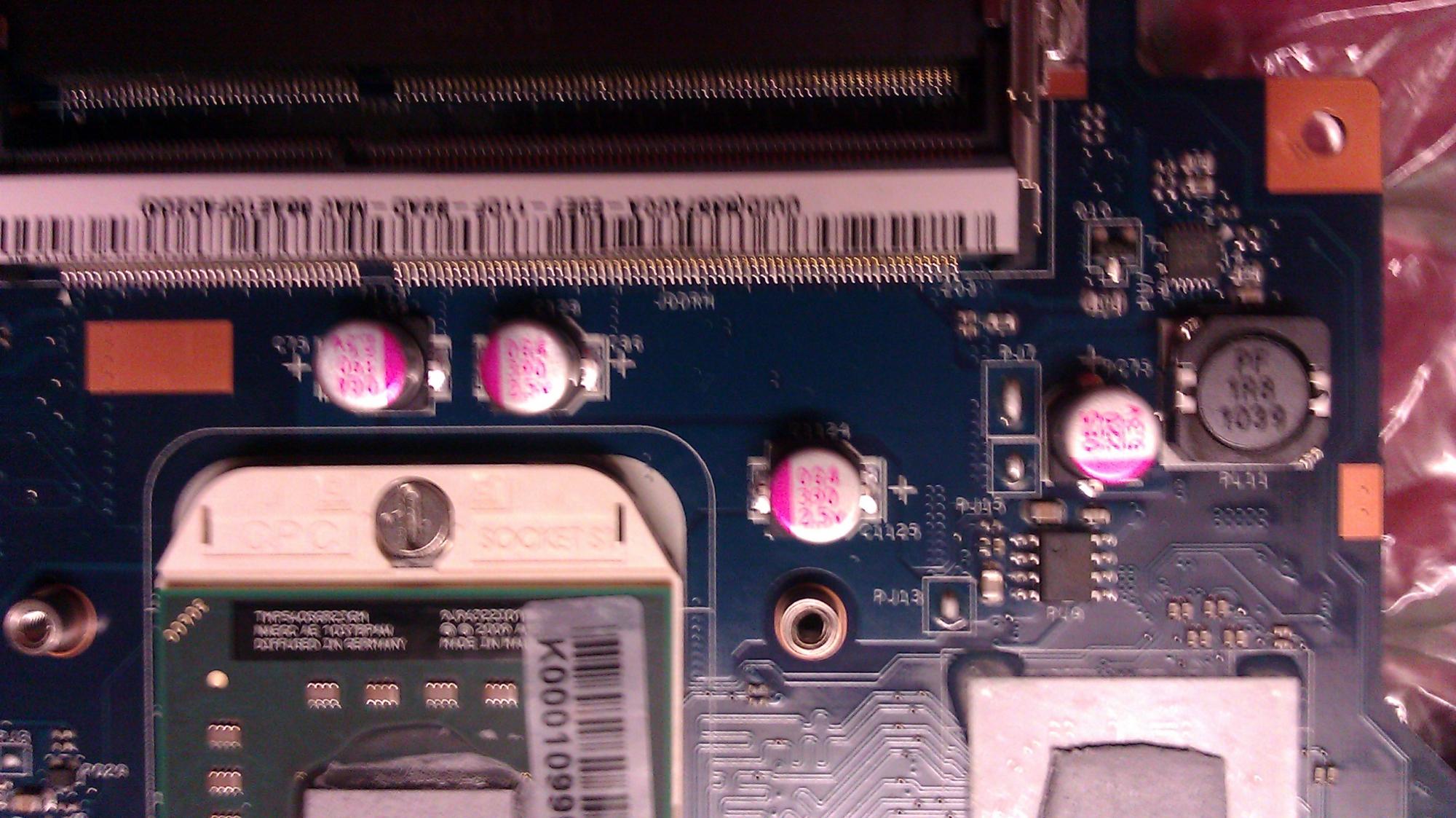 I have tried countless remedies to no avail. I opened up laptop & attachments R pics of mobo. It does not have da NEC/TOKIN caps, however, there are: