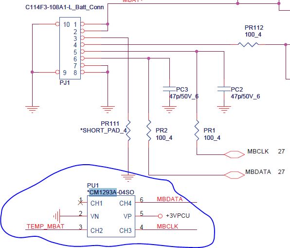 I need help on this the component pu1 is burnt, so i removed it and removed the short laptop is working fine now without that component, CM1293A-04SO.my question is what this component do?and it is ok to plugged in back the batttery and power on without that component?please help attached is the schematic and screen shot