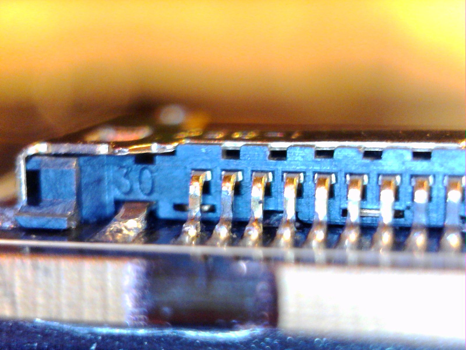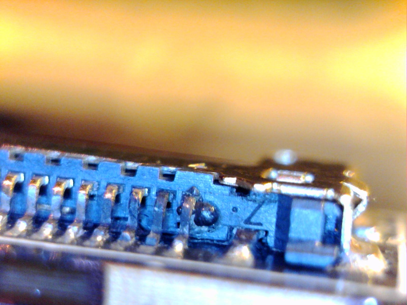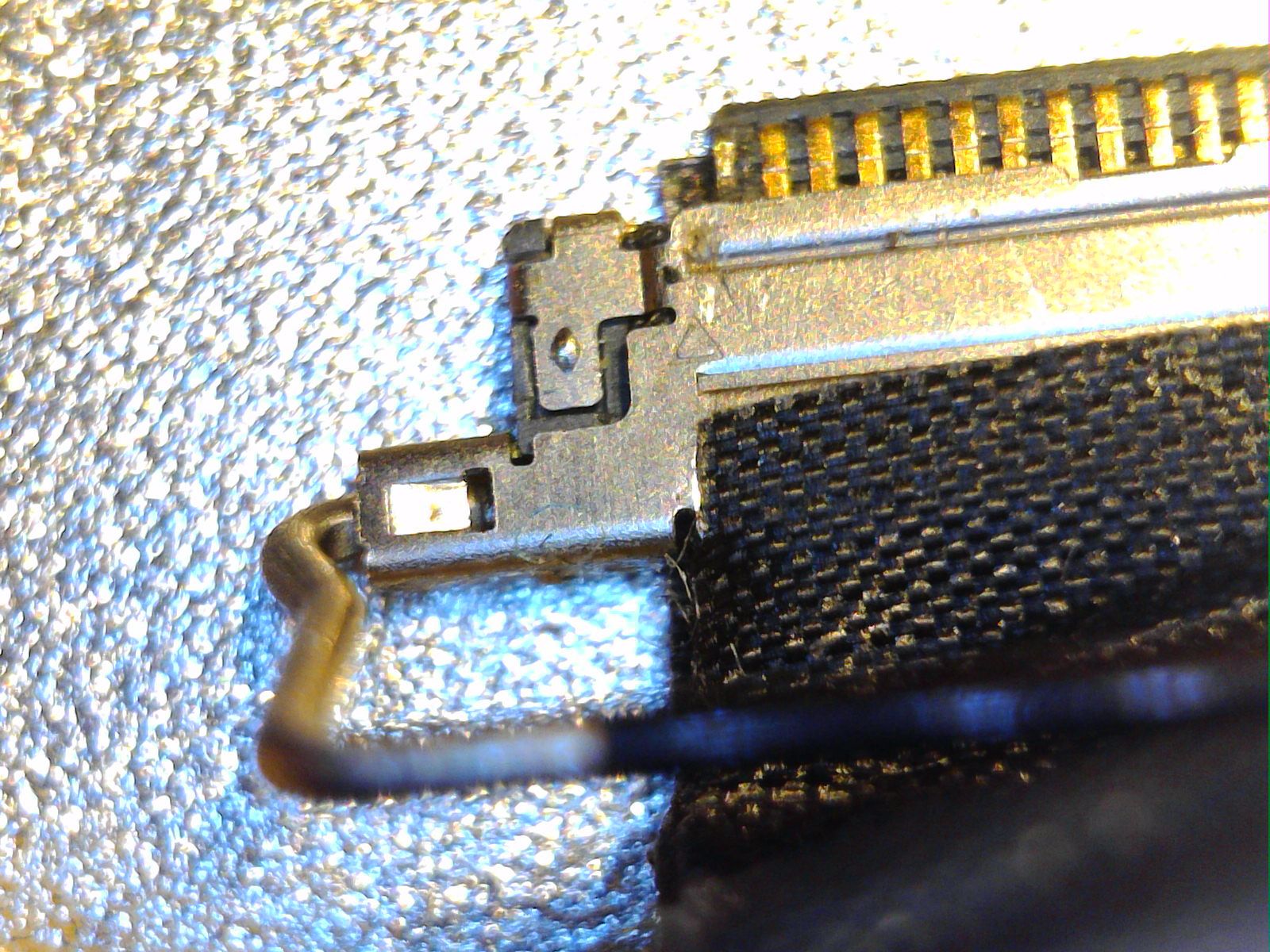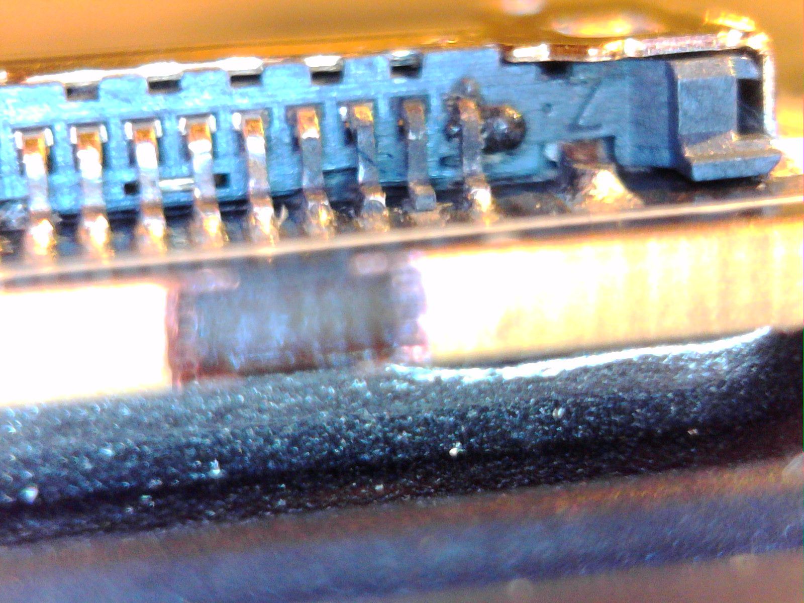 I adding some microscope shots of the connector. It looks like pin1 is completely gone on the cable. Also the screen connector looks bad, not sure if that's still good to go? I think there is some melted metal behind the outer pin, that blob?
