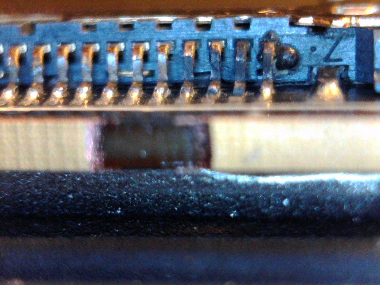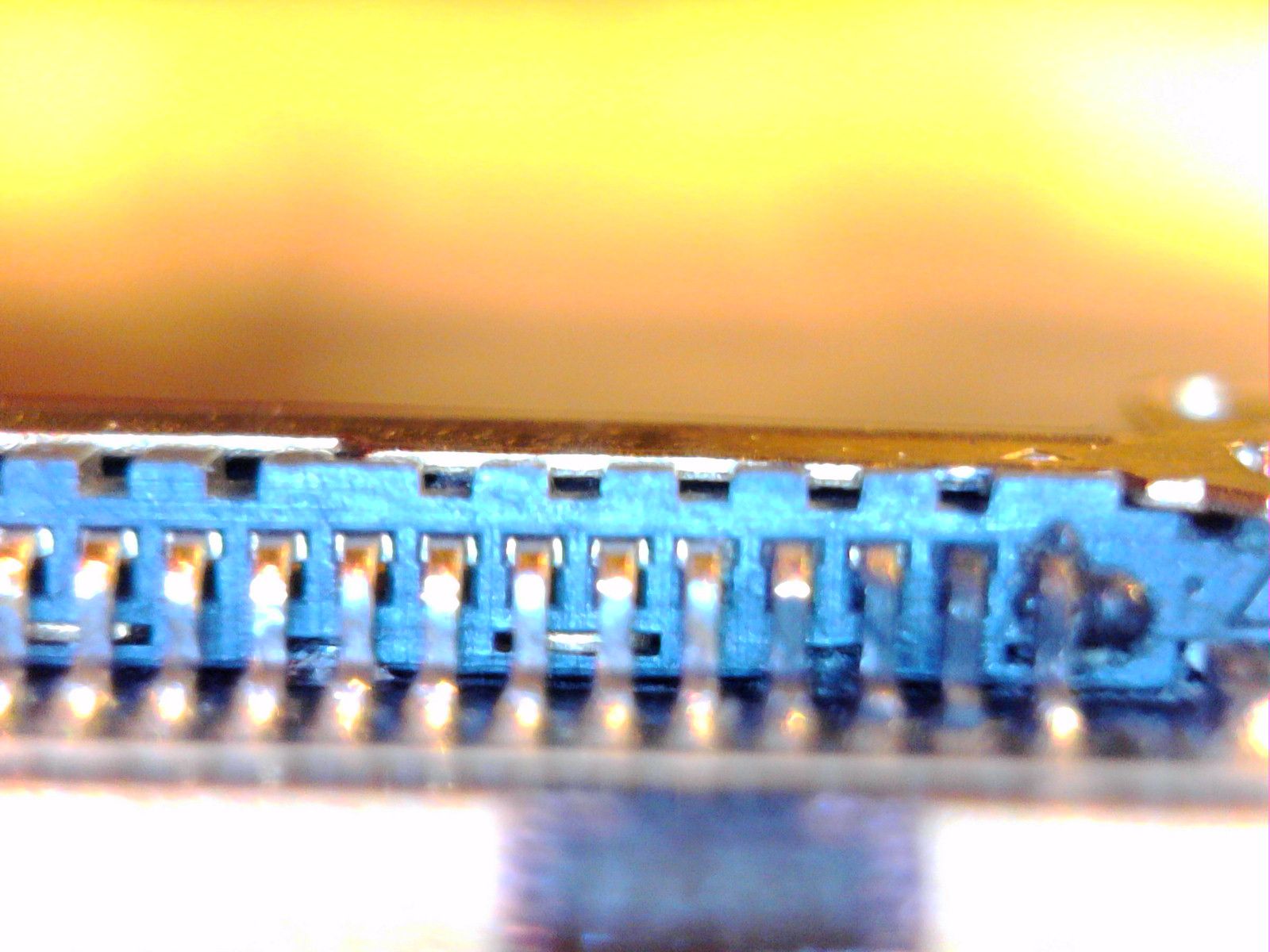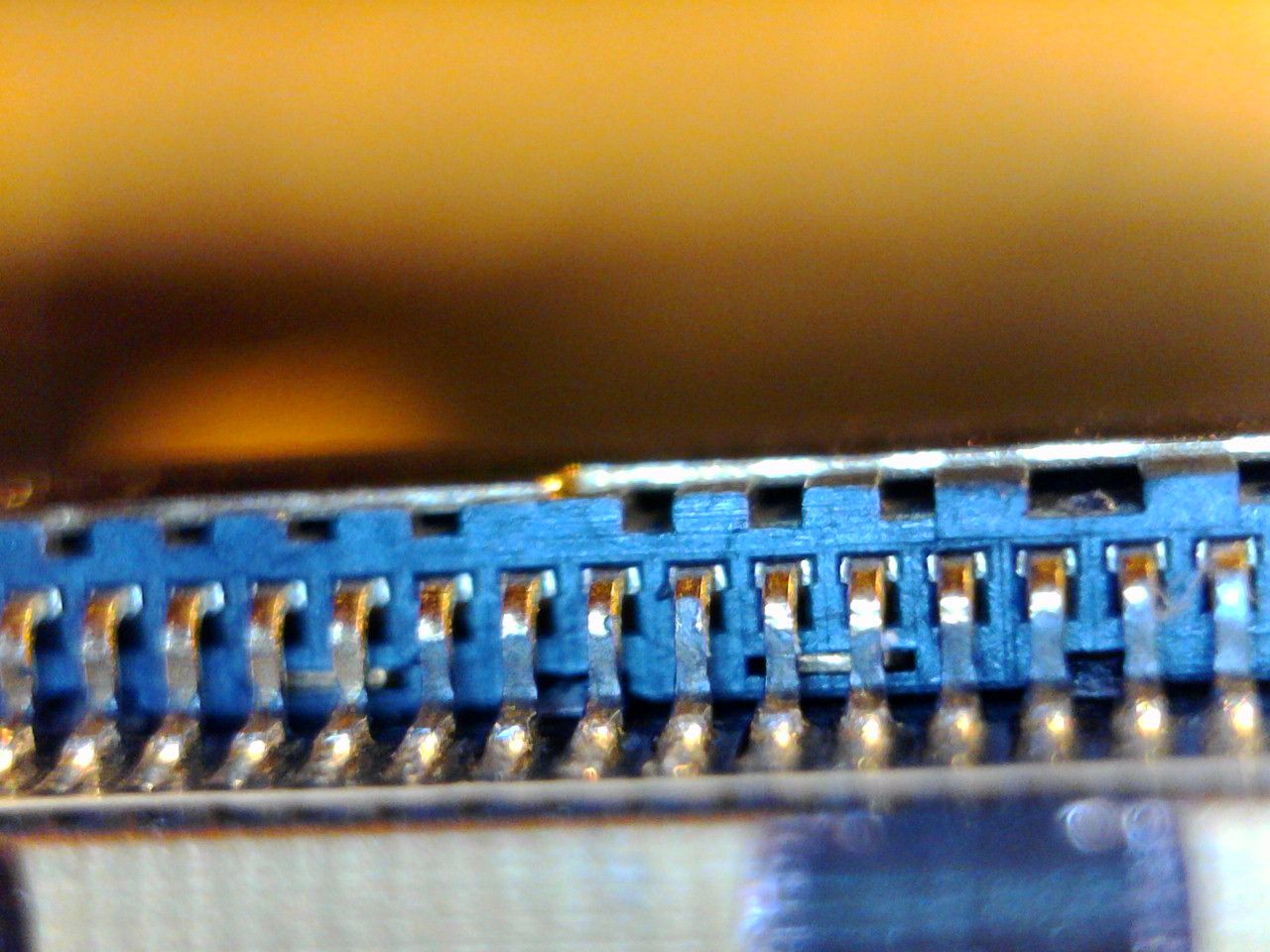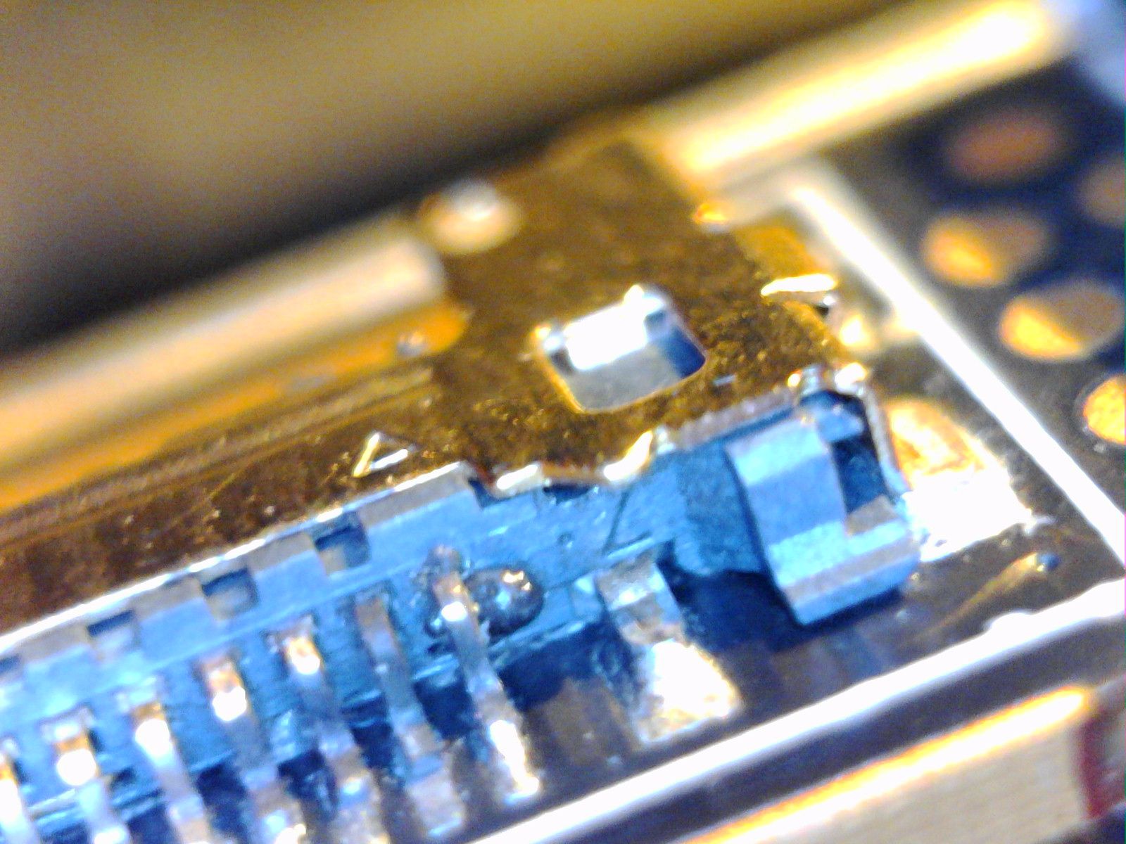 I adding some microscope shots of the connector. It looks like pin1 is completely gone on the cable. Also the screen connector looks bad, not sure if that's still good to go? I think there is some melted metal behind the outer pin, that blob?