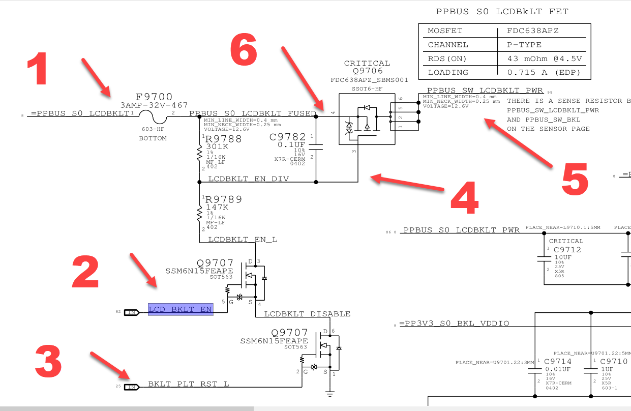 4) voltage on R9731, pin 1 = PPBUS_S0_LCDBKLT_PWR ?