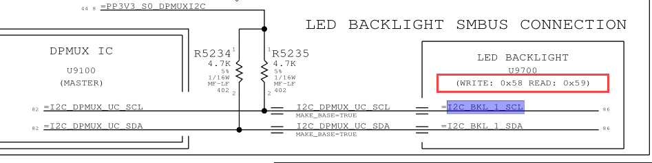 Backlight IC BKLT_SCL and BKLT_SDA both measure 0.545V diode mode to ground