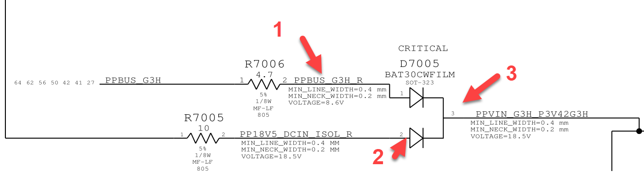 3) Volts on L7095, pin 2 = PP3V42_G3H. This rail must be 3v42 or close to this value.