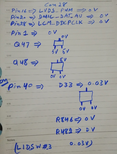 Lvds connector pins and surroundings components were checked, some have values others are not, the findings are attached in pic along with schematic pic.,., any guidance please