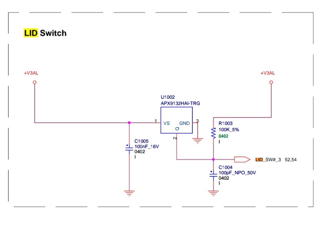 >> as per schematic, the lid switch value on the Hall Switch IC (U1002-as shown in attached pic) is also 3.18 V