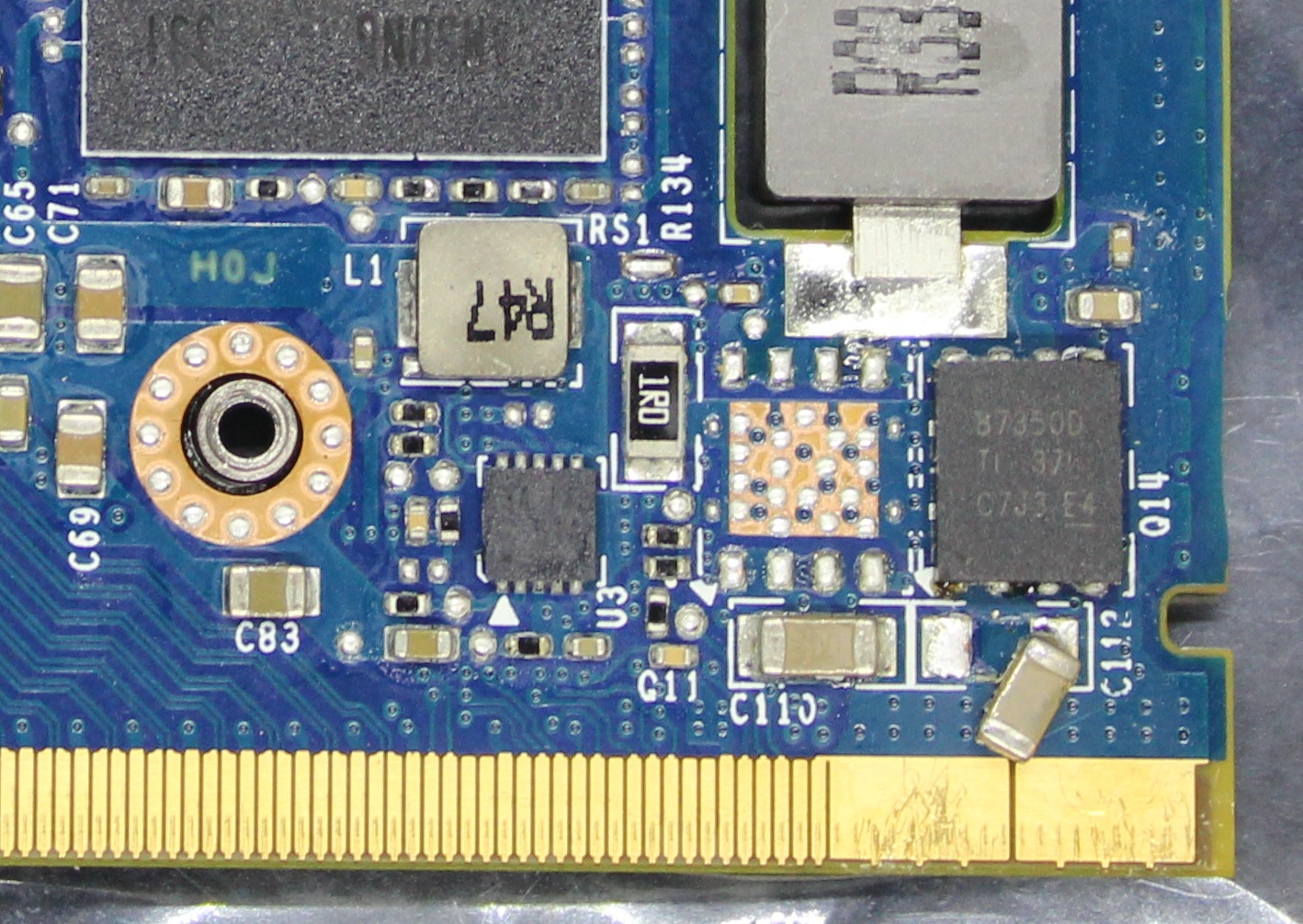 I have measured the PWR_SCR pad's to ground on the card and they show 1.7ohm. I have not been able to find any schematics or boardview files for the MXM card.