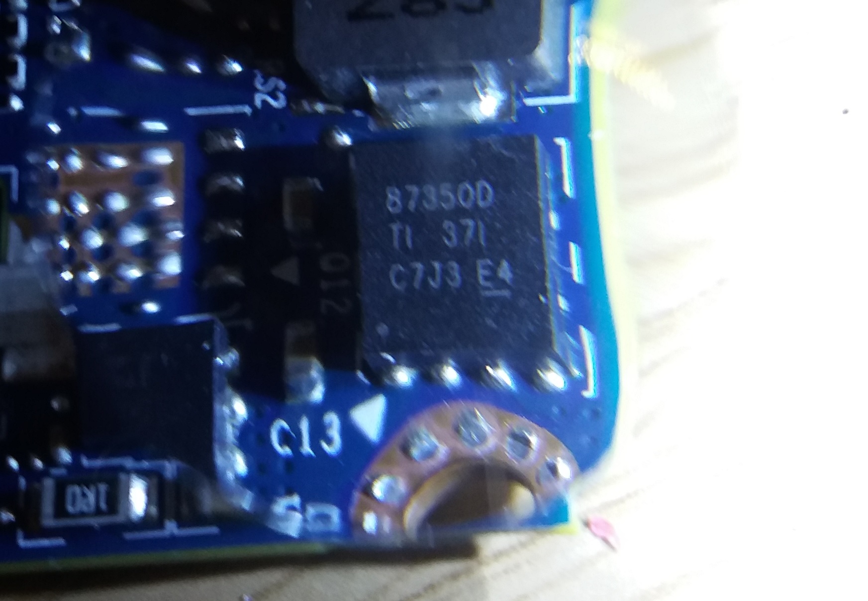 Visual examination has not revealed anything obvious. I tried to measure the mosfets (CSD87350Q5D from TI, I think.) on the card, but to my understanding they are good. I have tried to inject voltage to the PWR_SCR and GND pad's and used isopropanol to find the short, but no luck. I only used 1V and 250mA.