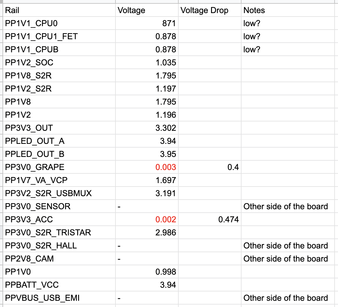 Any suggestions how to proceed, what is ought to be failing, tristar chip with missing PP3V3_ACC or grape chip with missing PP3V0_GRAPE? Is some of these rails vital for the tablet to boot up?