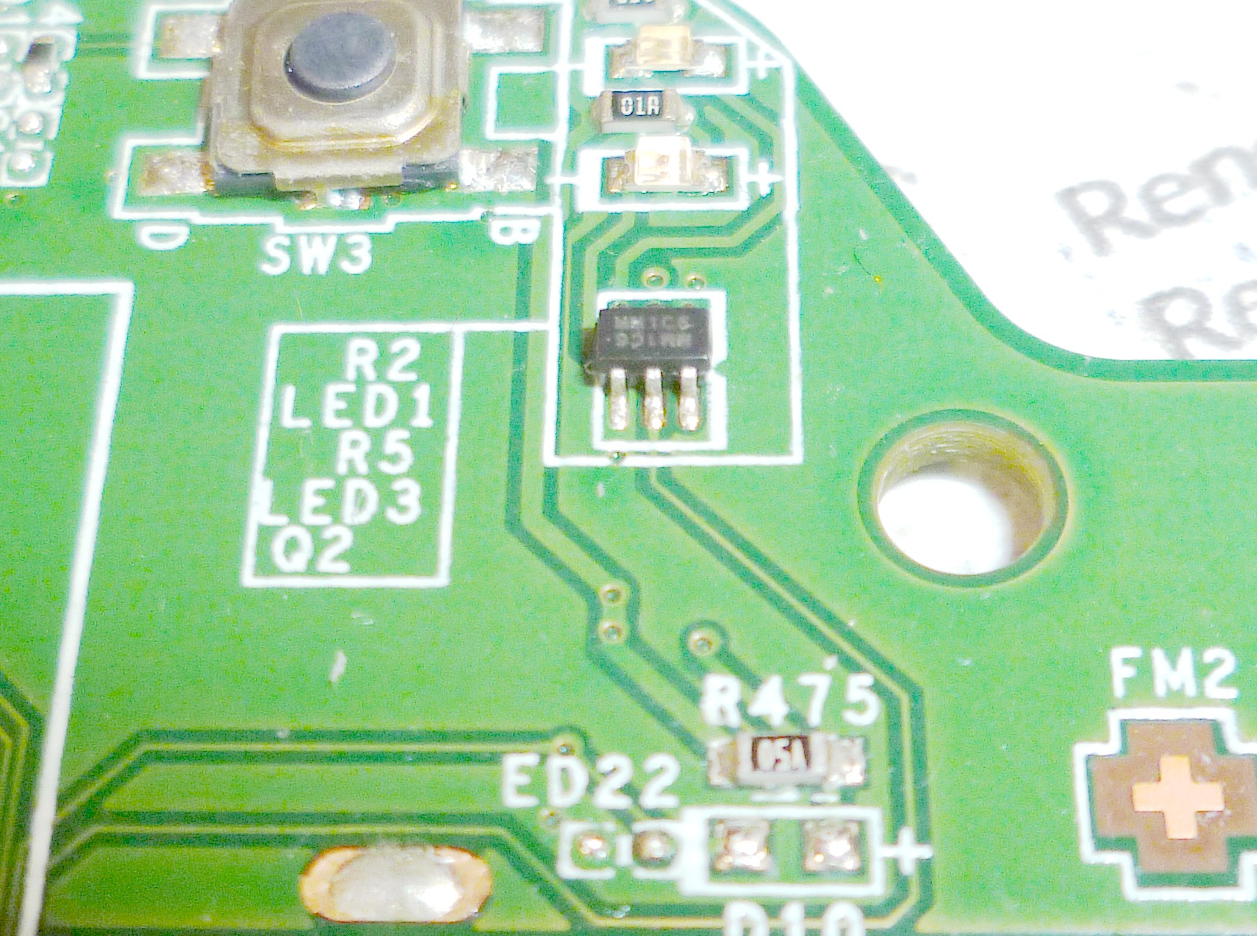 I am trying to identify an IC that is on the power switch of a MSI laptop, as shown in the picture. It is either marked MM1C6 or MMTC6, not sure.