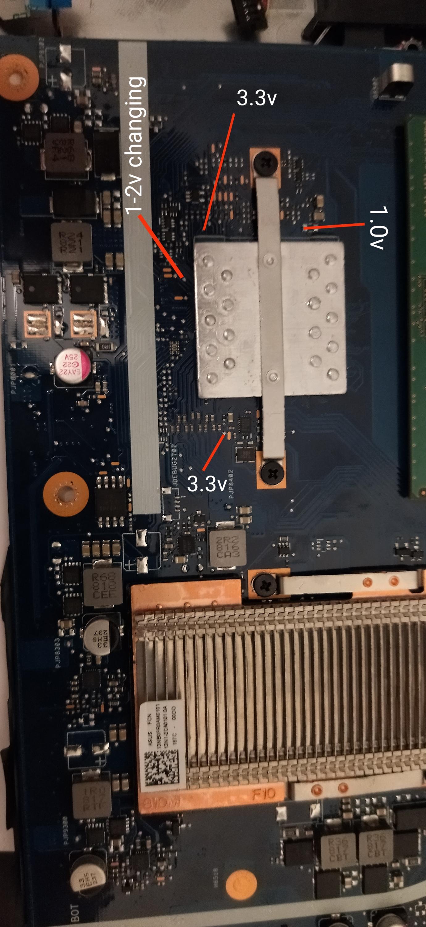 I have an Asus x705mb at my hands, that powers on but doesn't start. I read the beginner's guide as i'm not really experienced in repairing motherboards and i can't find the board's schematic but i tried to get vcore voltage, which i'm not sure where to measure, i'll add a picture about this.