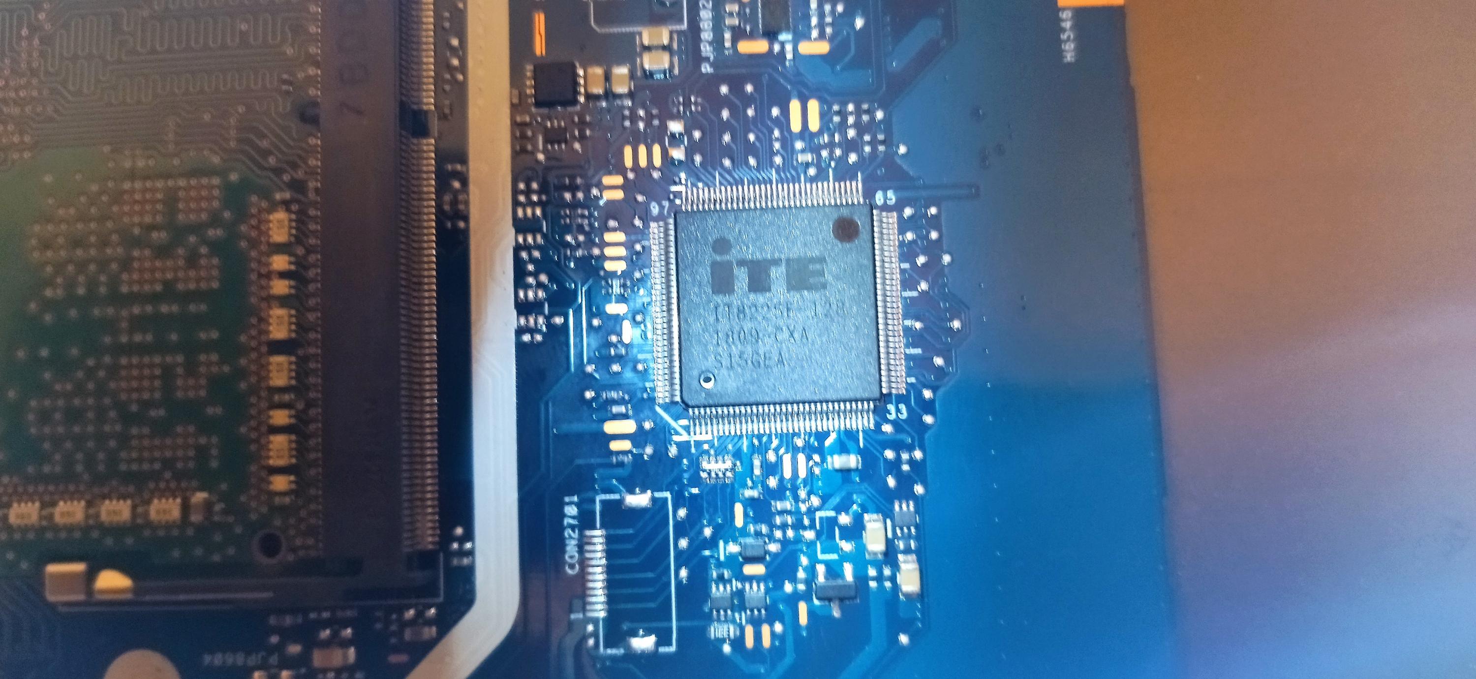 The notebook was hit hard in the middle of the keyboard, the housing shows heavy damage, but the board itself looks totally fine.