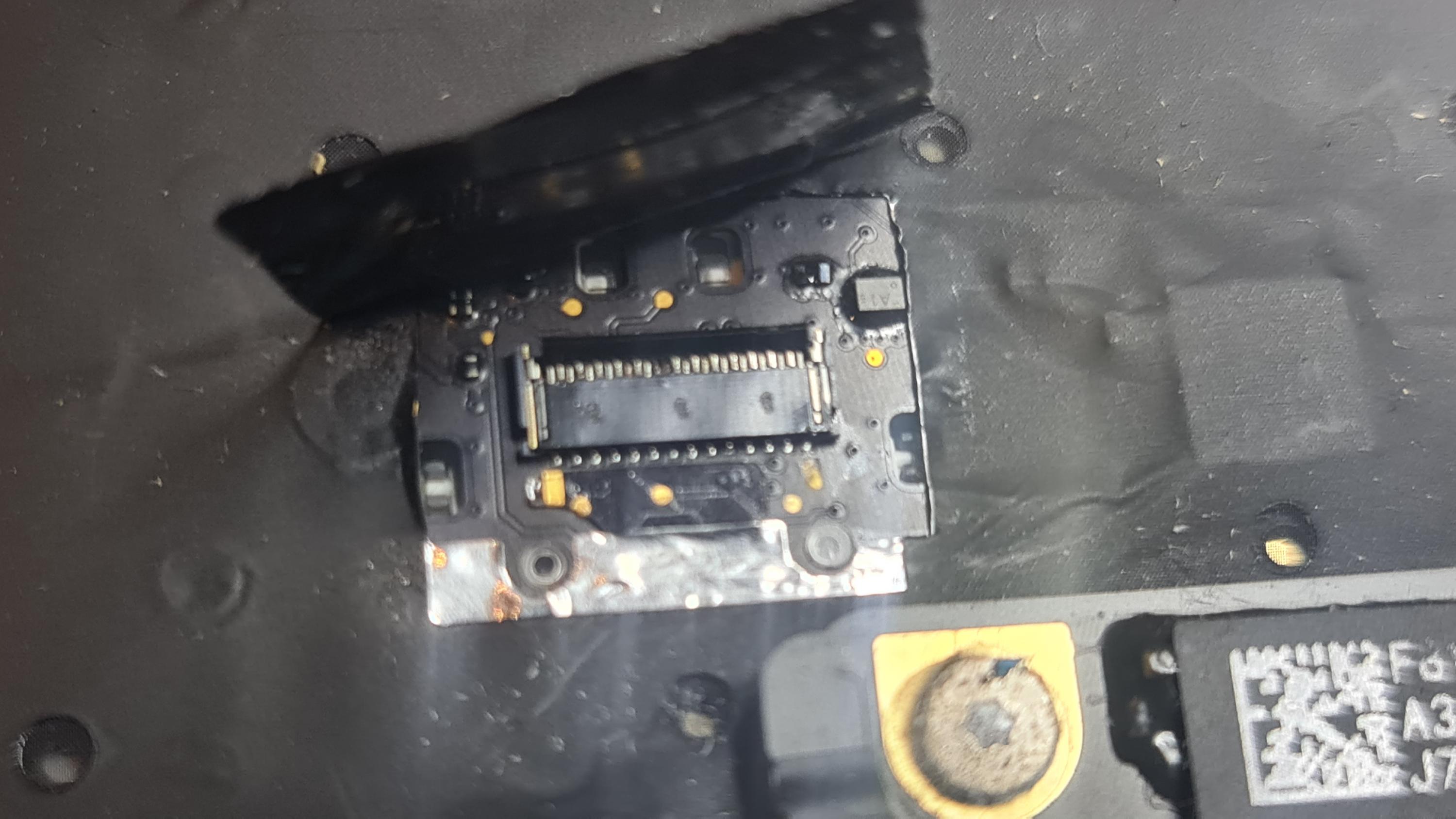 I bought a MacBook Pro M1 and also got a second one for spare parts. The seller told me it had a small water spill. After opening it, I found four spots with corrosion on the board.
