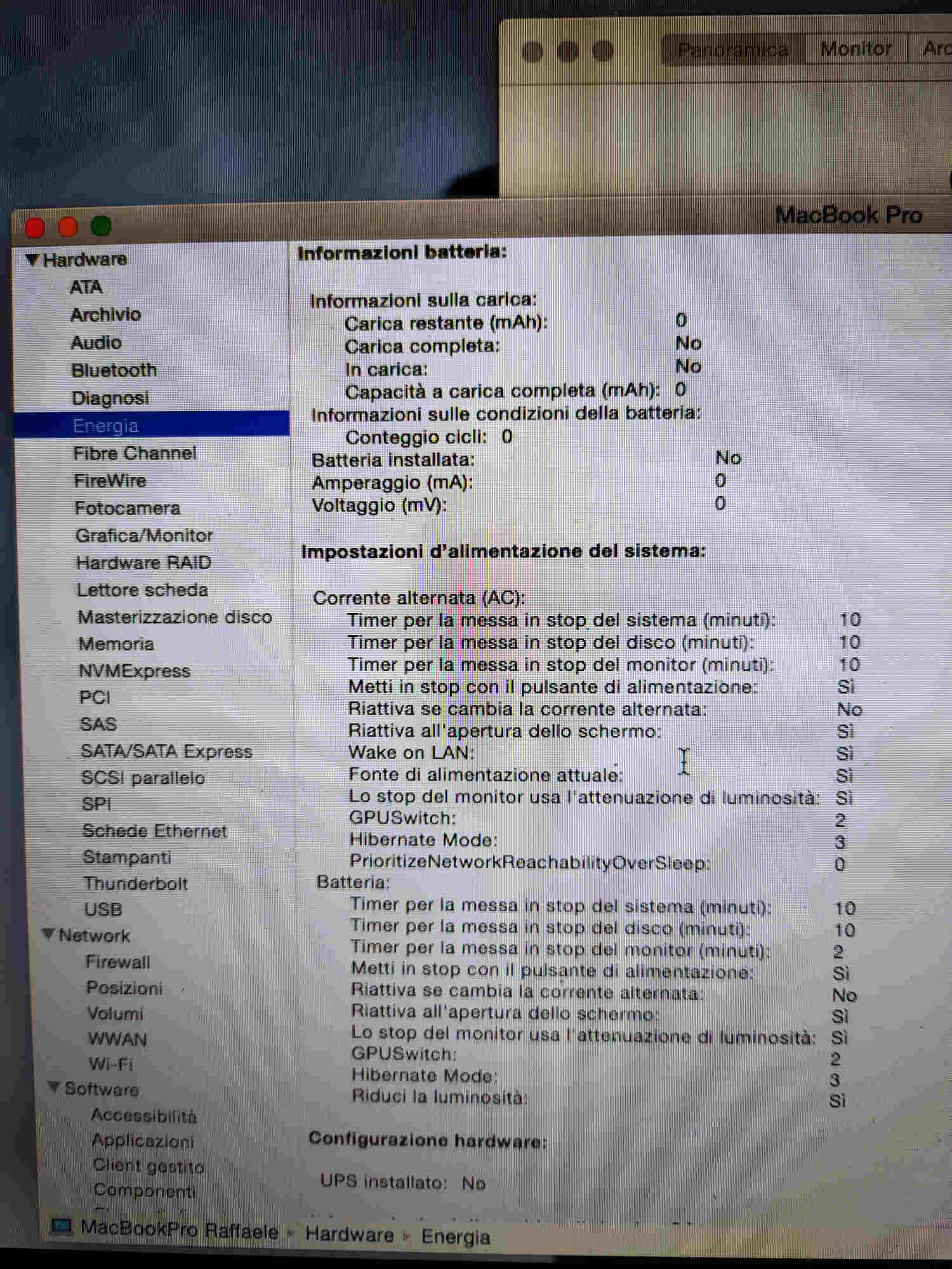 Conversely, when the battery is mounted in its seat Macbook turn on only with AC adapter (after is turned on I can unplug Magsafe and keeps working only with battery but doesn't detect it)