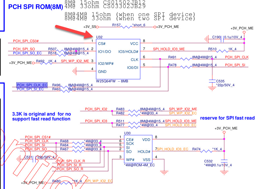 Yes bro spi placed on same place (U32) 8mb flash and resistor present and ok on r507 14ohm.