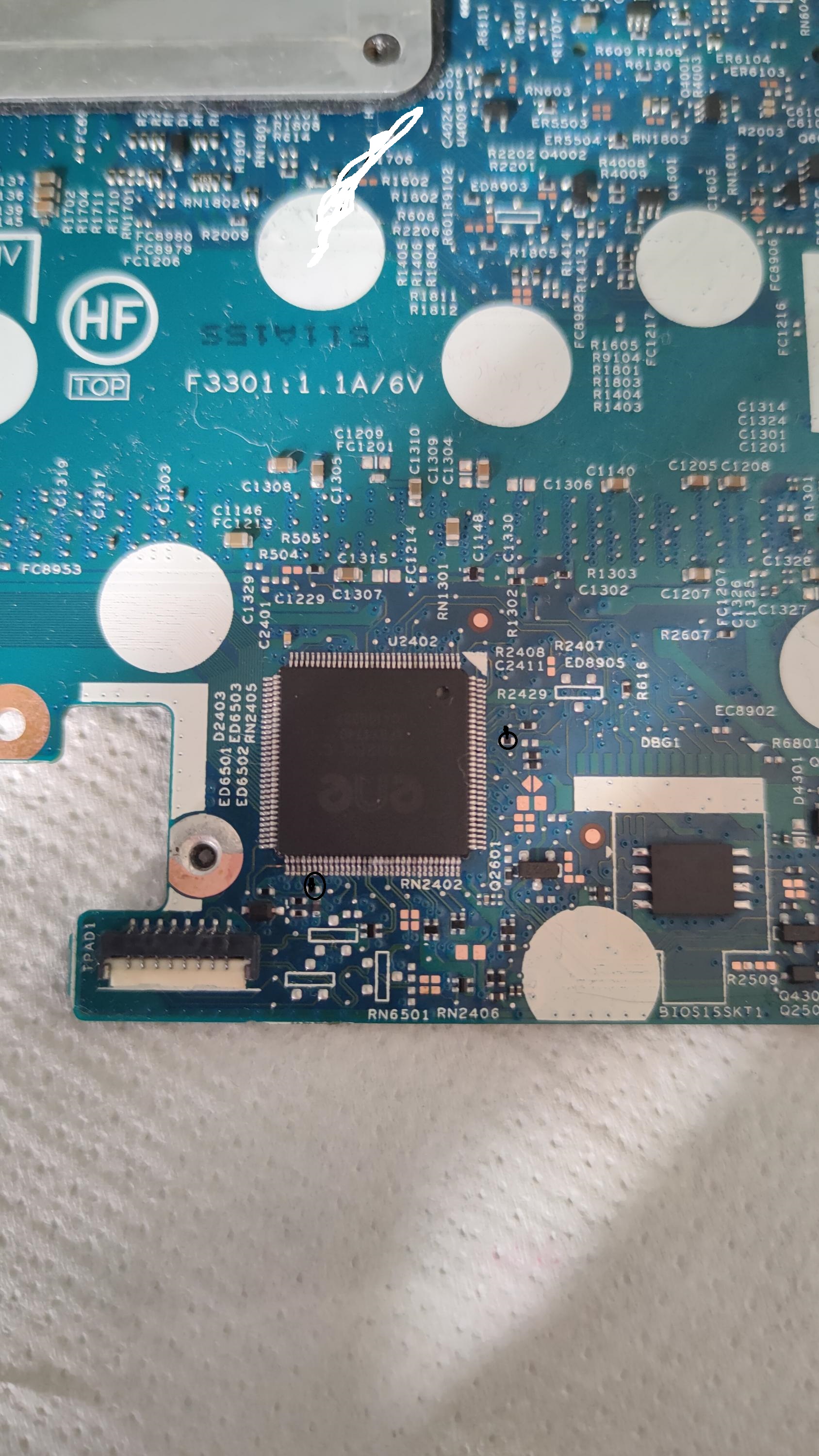 I can't find CPU power supplies, and Ram, Pl5201 marks 0.6 ohm, it should have 1 V, generated by Pu5201 (V15U 1533sf) I don't recognize the type of ic on the code,