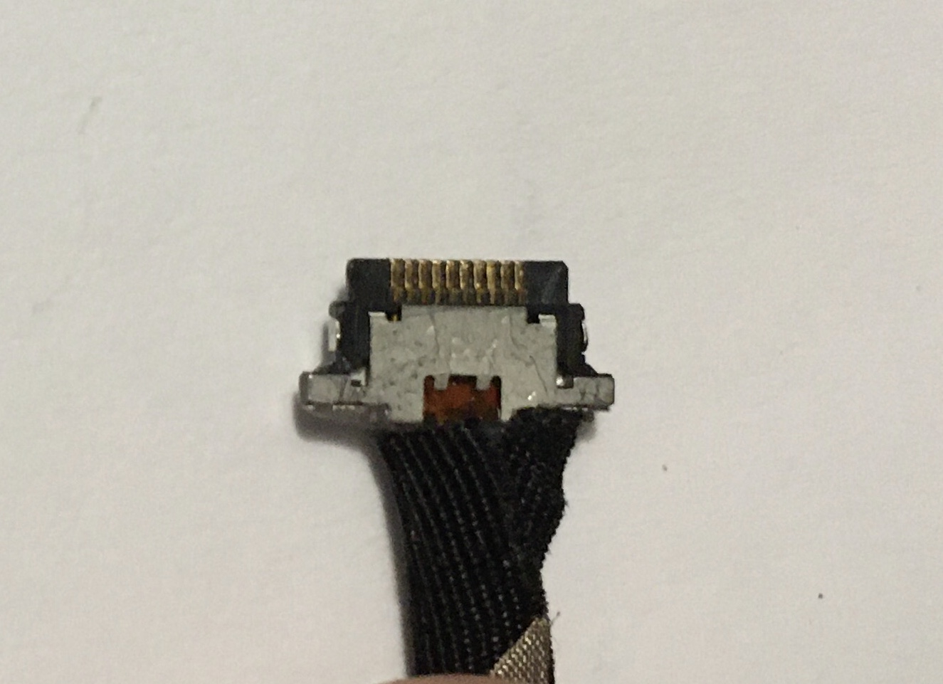Looking at the whole cable: the big end on the left connects to the laptop motherboard. There are 32 thin wires which are grouped into 4 bundles. Let's call them A, B, C, D: