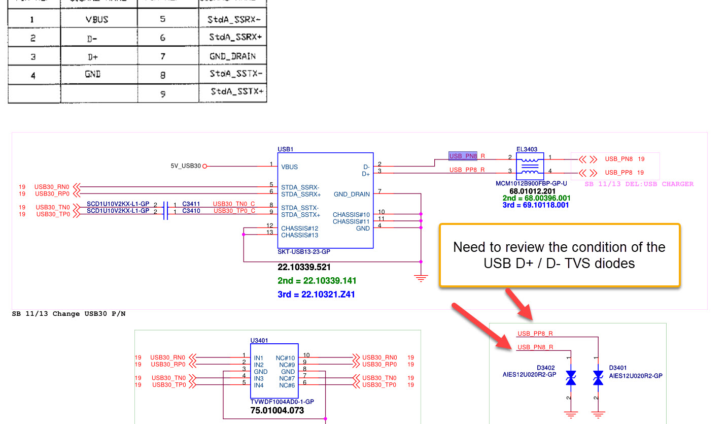 the computer work as expected except that all usb ports both on board and daughter board not work (usb3 on board, 2 usb2 on daughter board) all voltages seem ok, I take some measure from U3501 and U6301 and found as per below:
