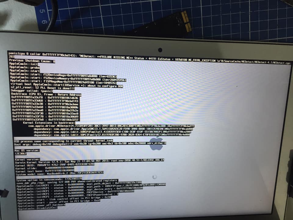 I got 2013 820-3437 that can't boot completely onto OSx and can load EFI ASD BUT can't on OS ASD and it gives this kernel panic error FAILURE missing ME. I already check ME disable strap HDA_SDOUT_R is low
