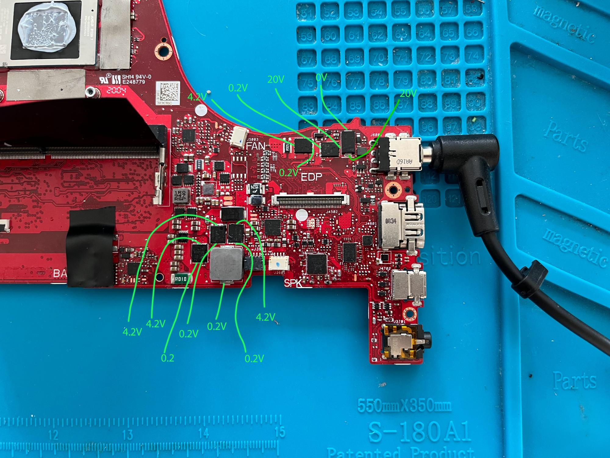 Thanks, already purchased replacements for them, as it was easier to get all of them when I was already purchasing the ones at the IC charging area.Ok. Then remove all power and check the resistance of the DC IN mosfets.