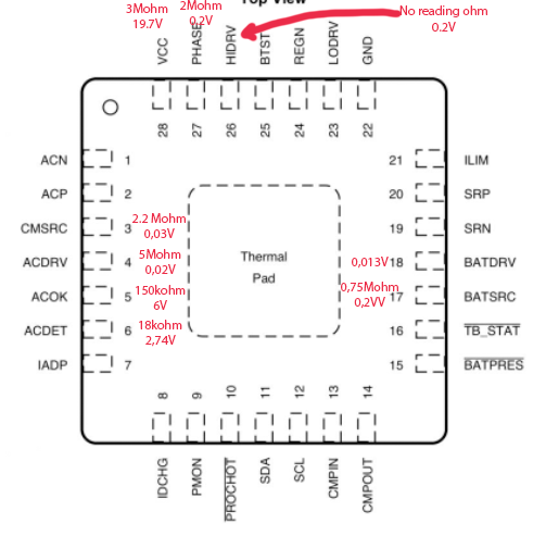 OH yeah, and about the "non-readings" at the DC-in mosfets... turned the probes arund, and they gave me 4.6Mohm and 5Mohm then.