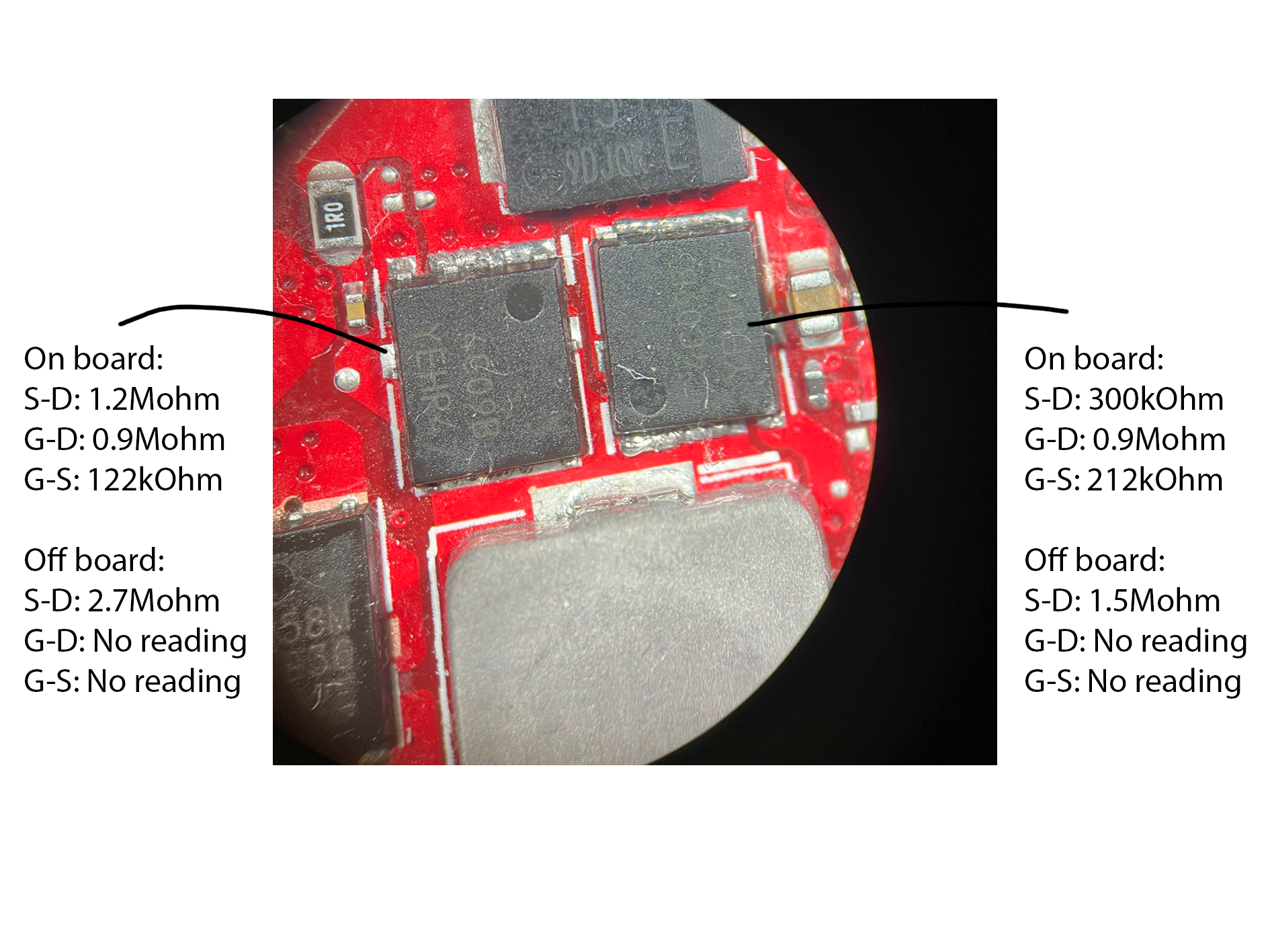 So I should desolder the "new" mosfets again, and meassure them? Then replace the mosfets at the DC-in area?