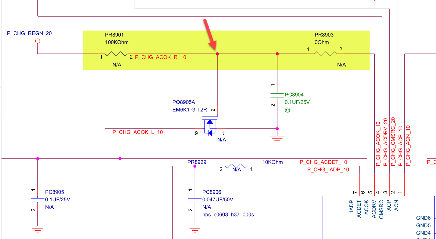 I do not get a short on the DC-In mosfets, however as I had with one of my other machines, the first mosfet does not seem to let voltage through, so the second mosfet does not receive 20V. (See pic).