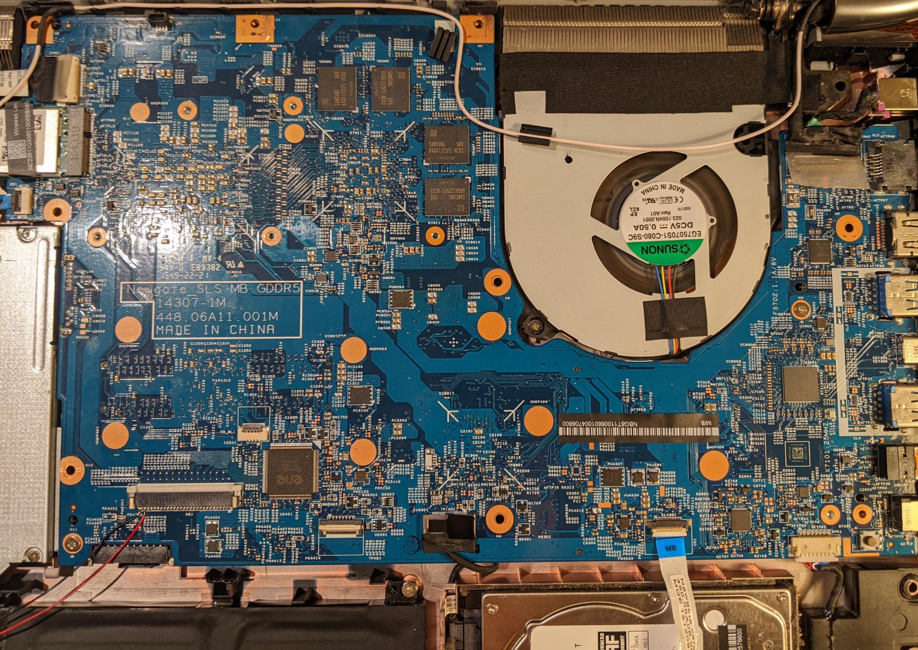 Acer Aspire Nitro VN7-792G. Motherboard part number is 448.06A11.001M. After attempted upgrade, owner mangled kb ribbon and appears to have shorted something else since trackpad is not detected. For KB, I was able to solder a switch to the power pins. But I'm not sure how to track down issue with trackpad. Examining the area in microscope, I did find one small ceramic cap with a burn mark on it (see 2nd pic where highlighted) which I replaced but trackpad is still not detected.