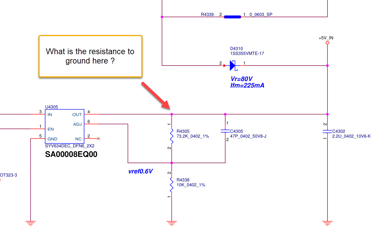 What is the resistance to ground for the output of this LDO ? (remove all power; meter in resistance mode)