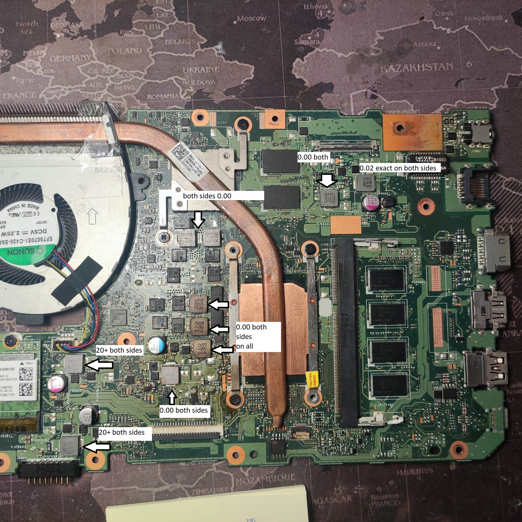 Here is the picture with coils measured to ground,and the chips (mosfets measured as well )Comment