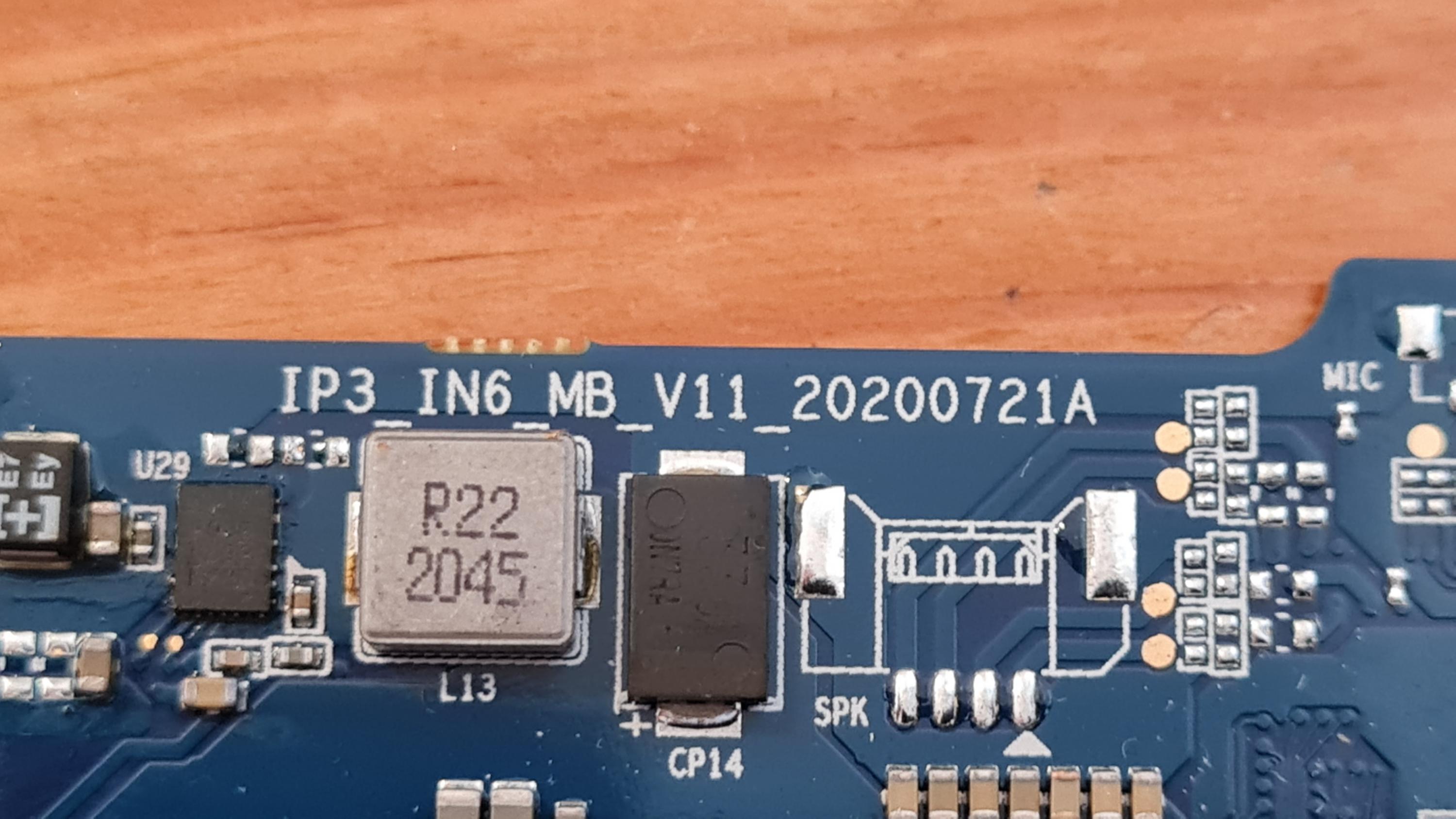 Motherboard model is IP3_IN6_MB_V11_20200721A and I need to identify component U21 which is marked with ALVM 297. Processor is an i3-1005G1.