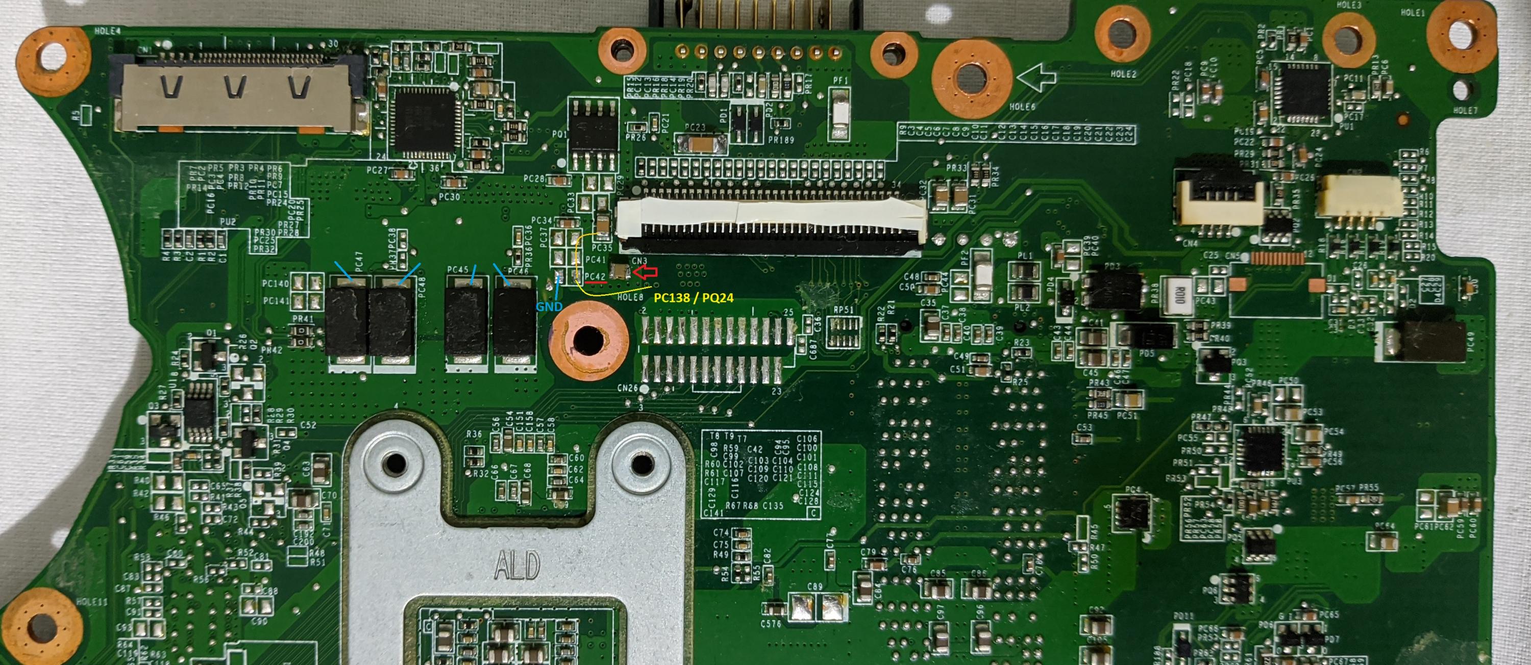 PC42, left side of the flat keyboard connector (missed in the photo n4).