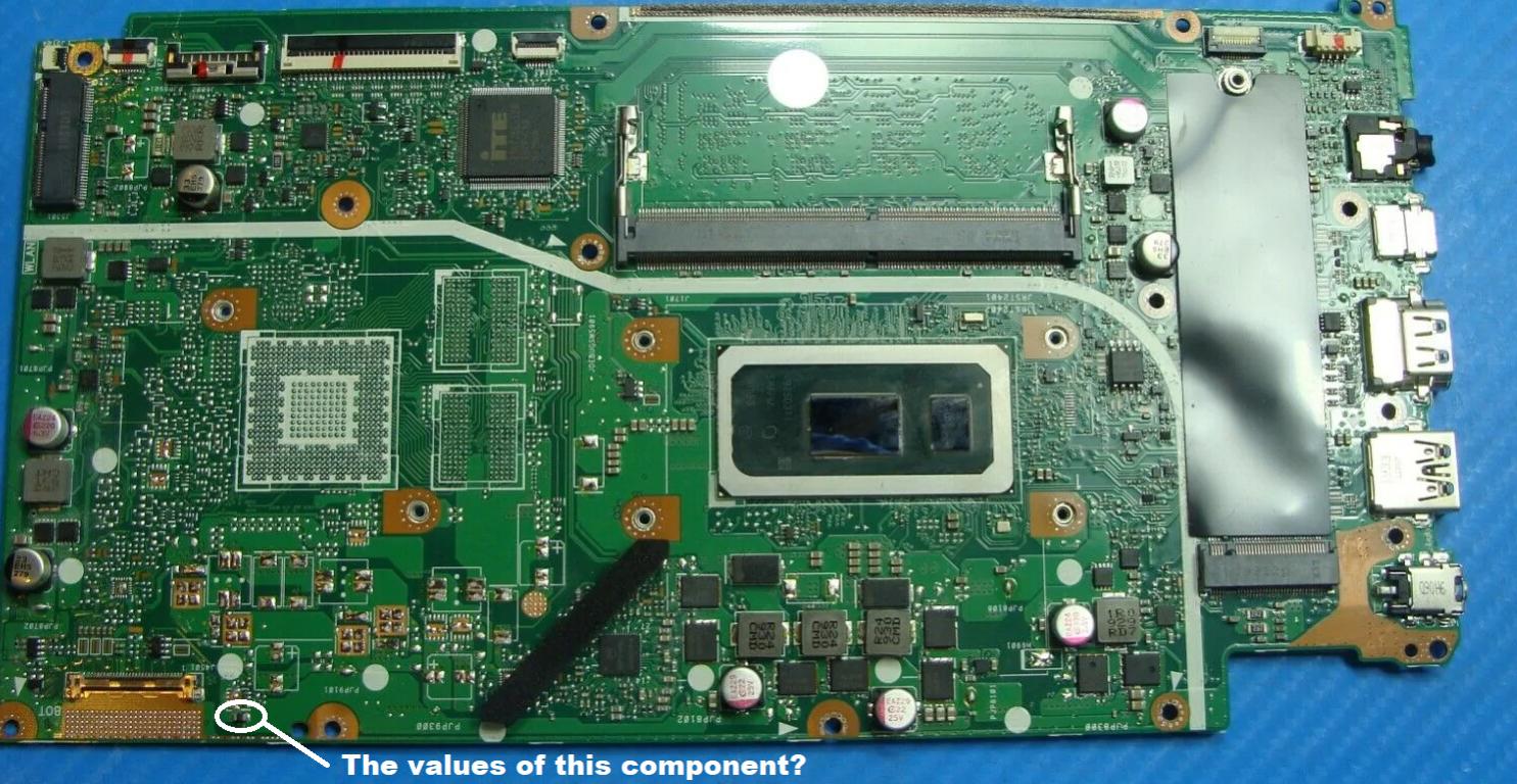 When I removed the motherboard from the chassis it seemed one of the components was completely burnt out! I have attached a picture below of the component which i have successfully removed, circled in white, this is the component that was burnt out on my motherboard. The connector to the left of this is the LCD connector. The issue i have is the component being so badly damaged i have no idea what SMD it is or its values. I have searched for the schematics and board view, yet to no avail.