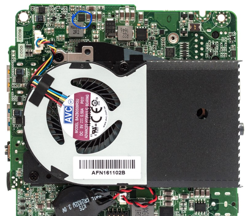 I need help identifying this IC, it's from an Intel NUC NUC6CAYB, attached are 2 photos of the IC and 1 photo of a normal motherboard found on the Internet.