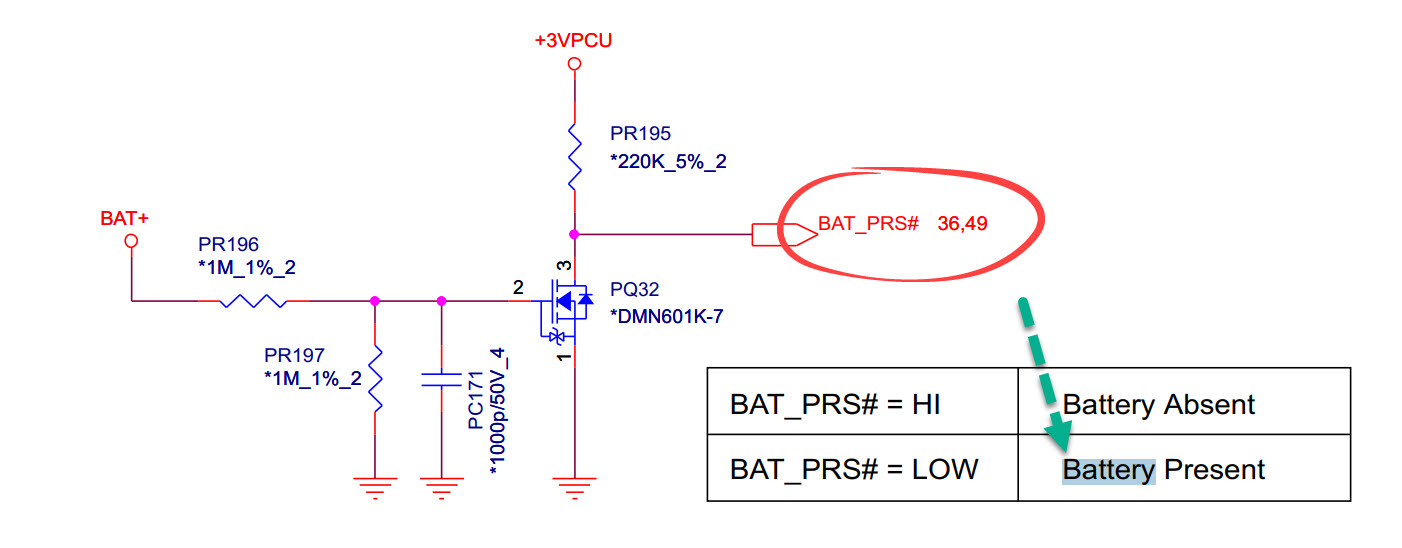 What is the voltage reading (with the battery connected) of BAT_PRS# ?