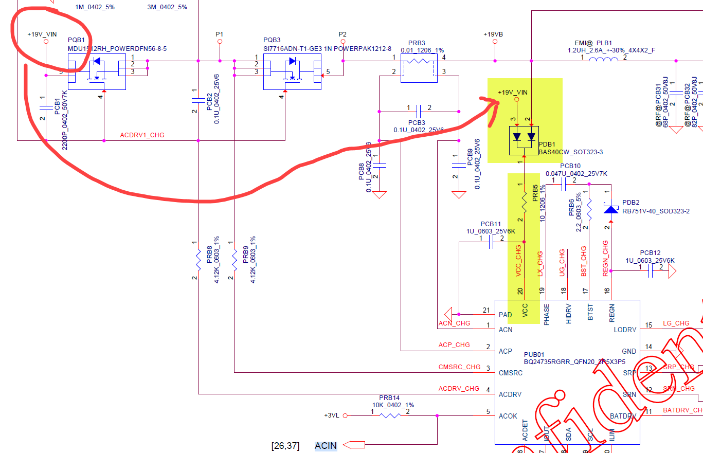 I have LA-C501P Mainboard in which VCC, ACDET are ok but NO ACDRV. Can anybody let me know what I'm missing?