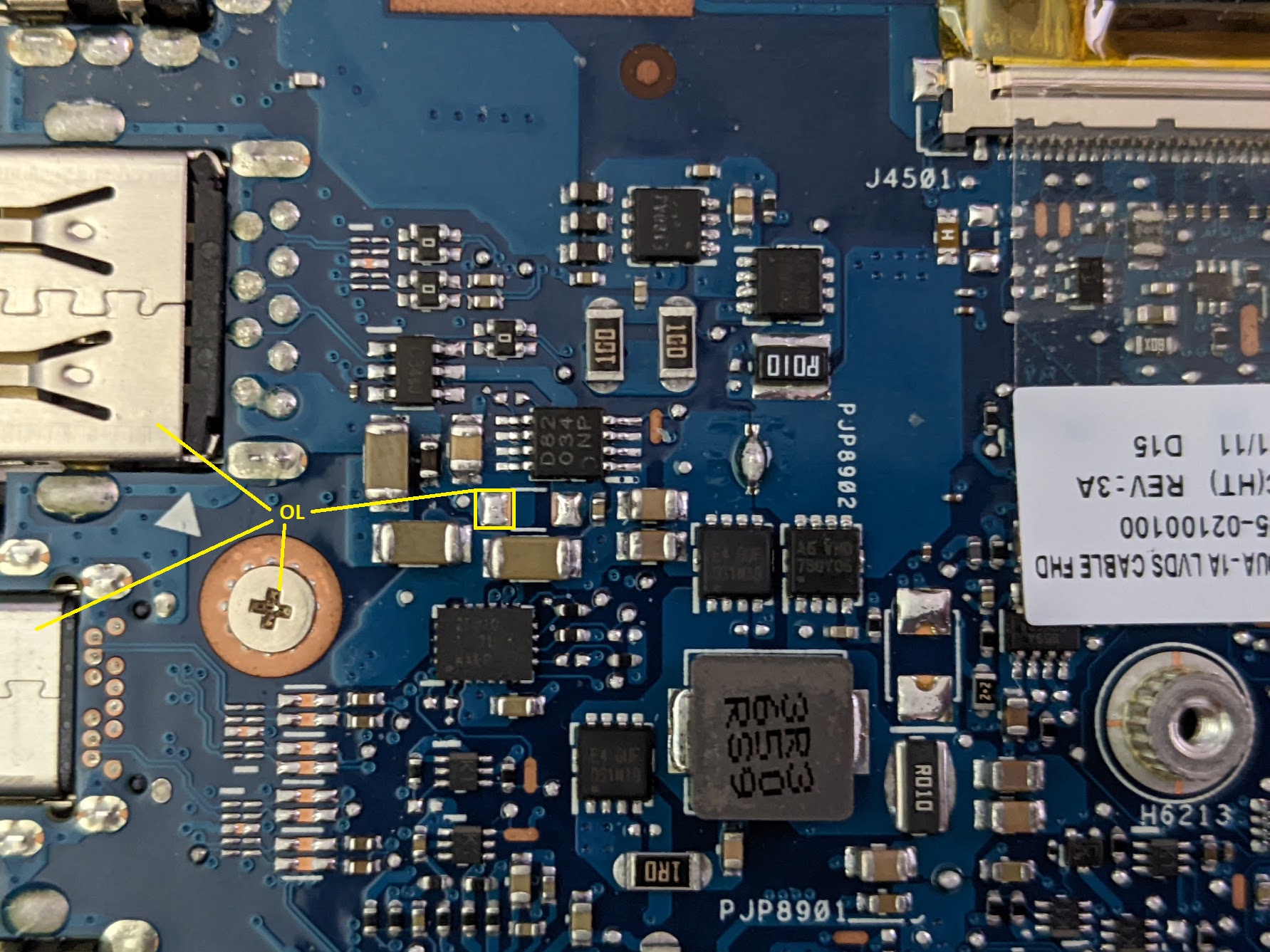 I have included pictures of the board, as well as closeups of some of the areas that seem important to the power supply/charging circuit. I did find two sets of schematics on the forum (https://www.badcaps.net/forum/showth...hlight=ux330ua) and have tried clicking through them to understand what things might be involved.