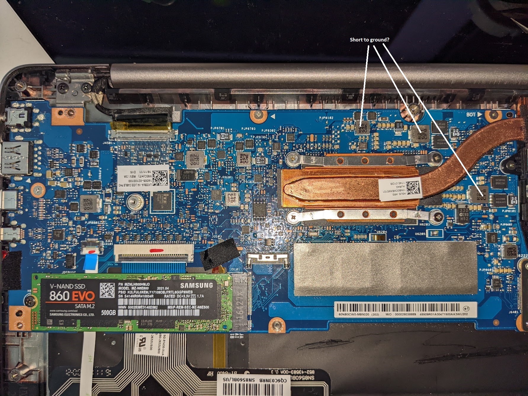 Now I'm getting worried because the original battery worked only moments ago. I search online and find that at least three other iFixIt customers have experienced the same or similar issues with this exact laptop and battery replacement... I figure, great...either the batteries they are sending are bad in some way or we all damaged our motherboards in the same way with ESD.